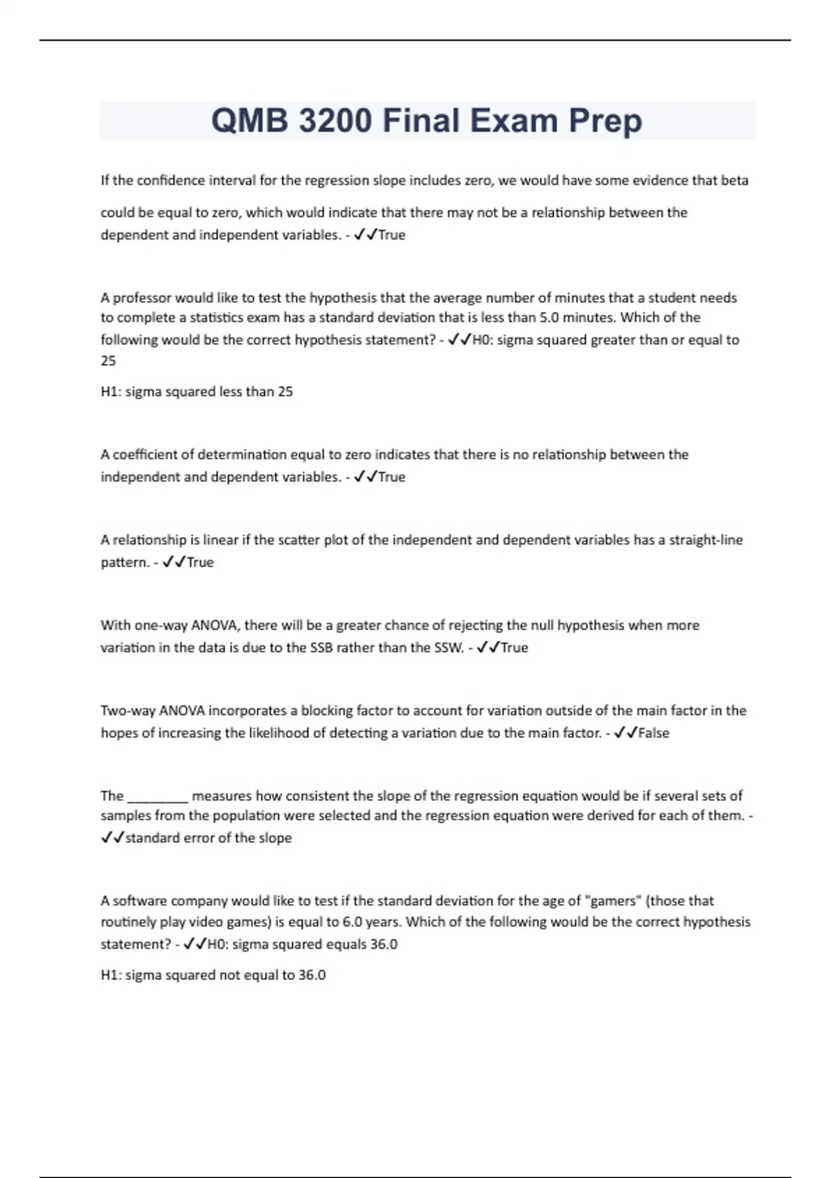 QMB 3200 Final Exam Prep | Verified by Experts 2024