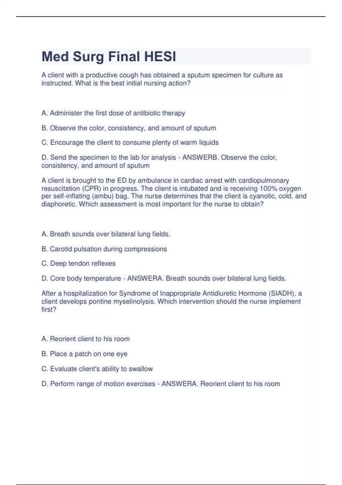 HESI Med Surg 1 Final Exam Questions and Answers 2023 (Verified Answers)