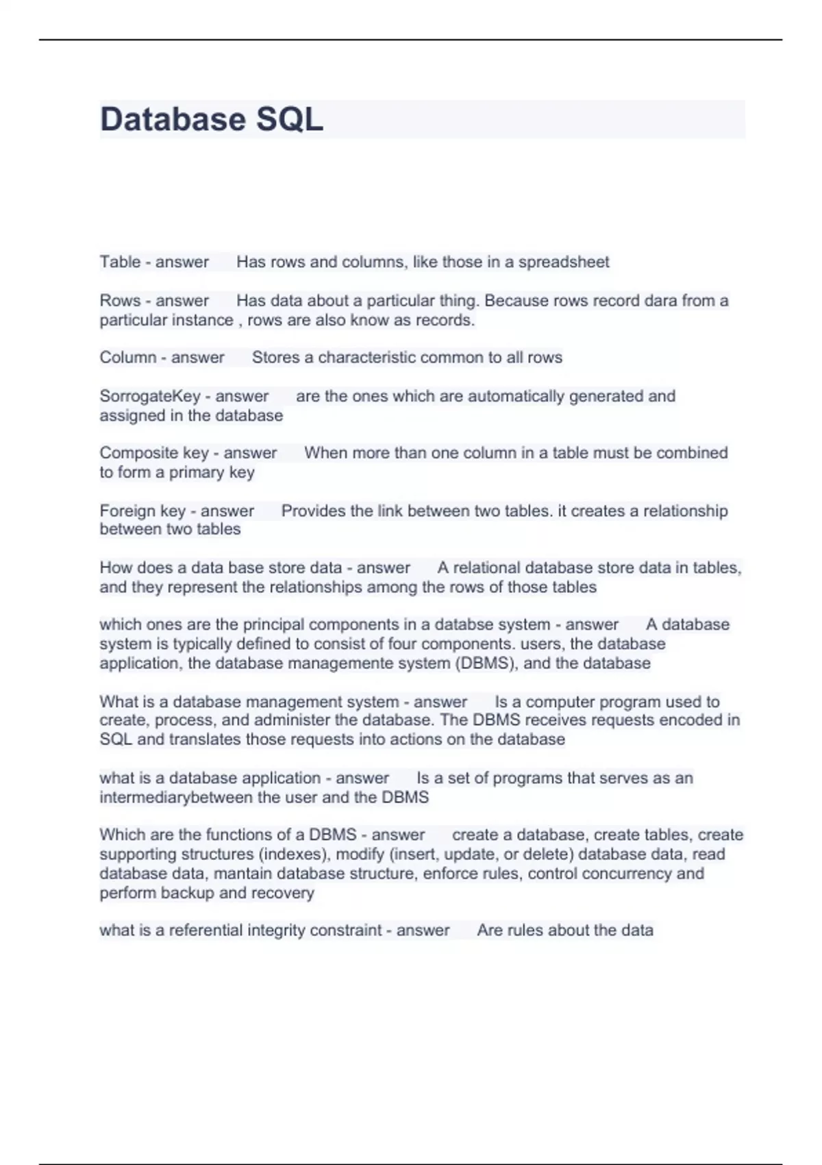 what is a referential integrity constraint - answer Are rules about the data Why a database is selfdescribing - answer databases also contains data that describes user data. Such descriptive data is called metadata because is data about data
