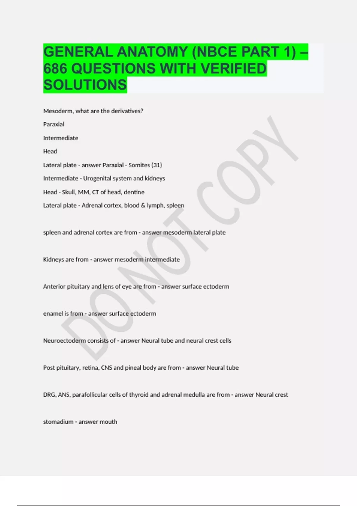 GENERAL ANATOMY (NBCE PART 1) – 686 QUESTIONS WITH VERIFIED SOLUTIONS.