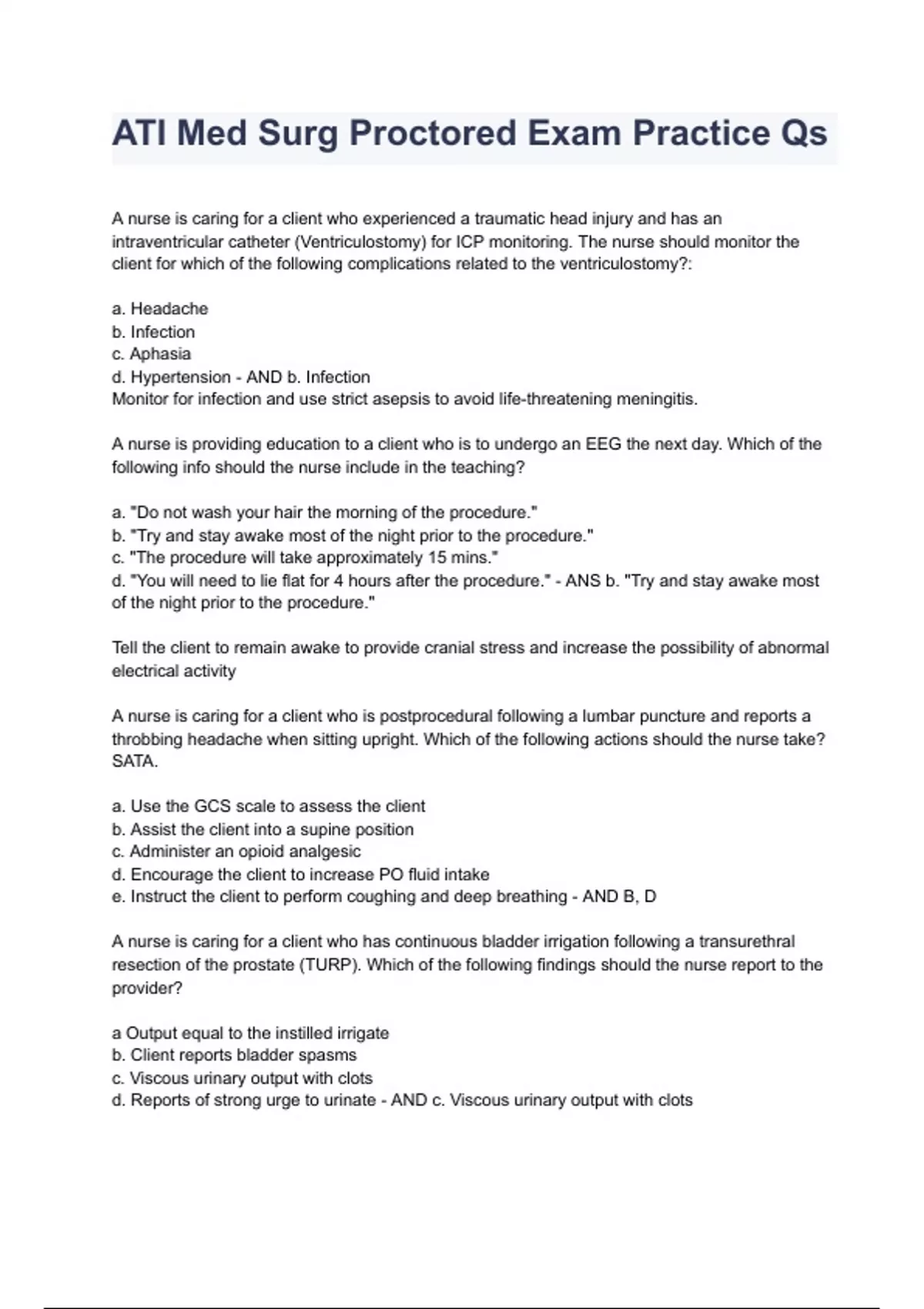 ATI Med Surgical Proctored Exam Practice Qs2023/2024 Questions & Answers Graded A