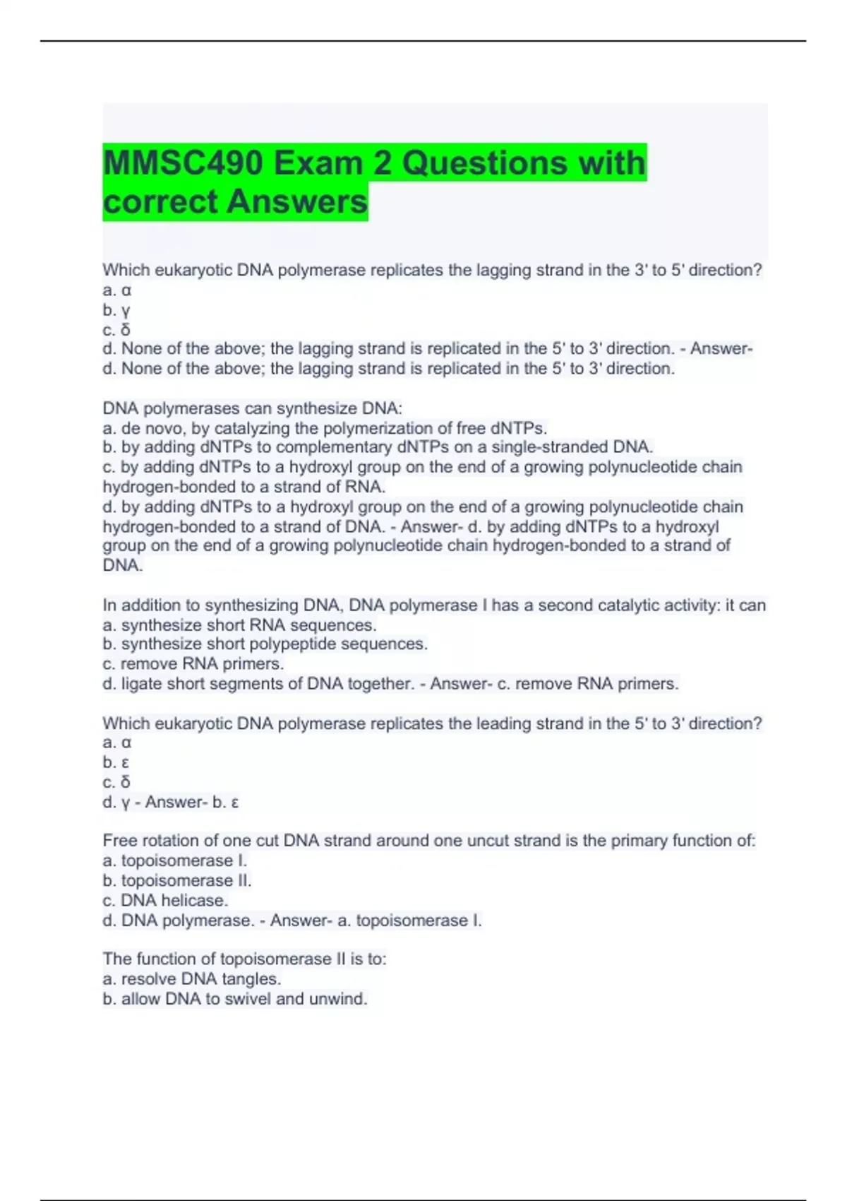 mmsc490 exam 2 questions with correct answers