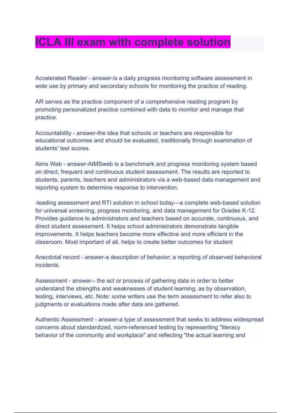 icla iii exam with complete solution