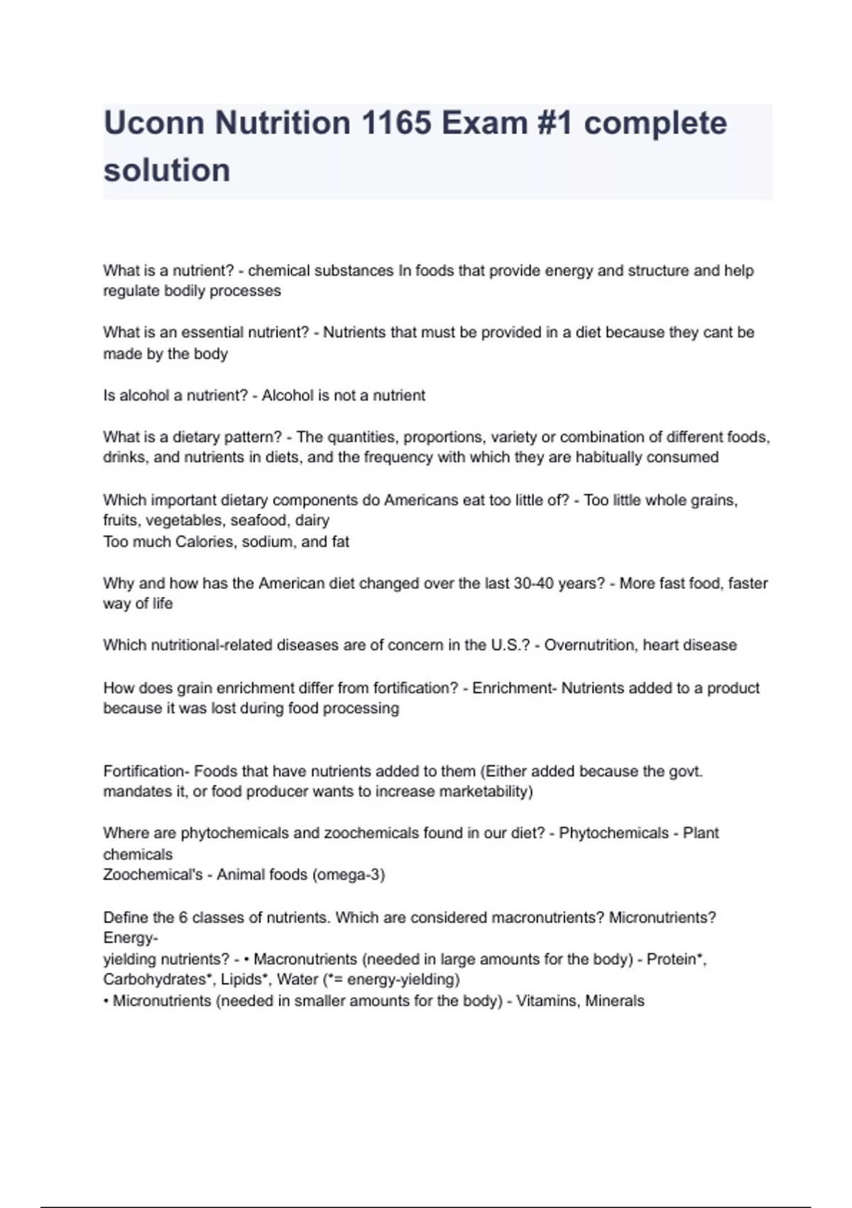 - Uconn Nutrition 1165 Exm #1 complete solution