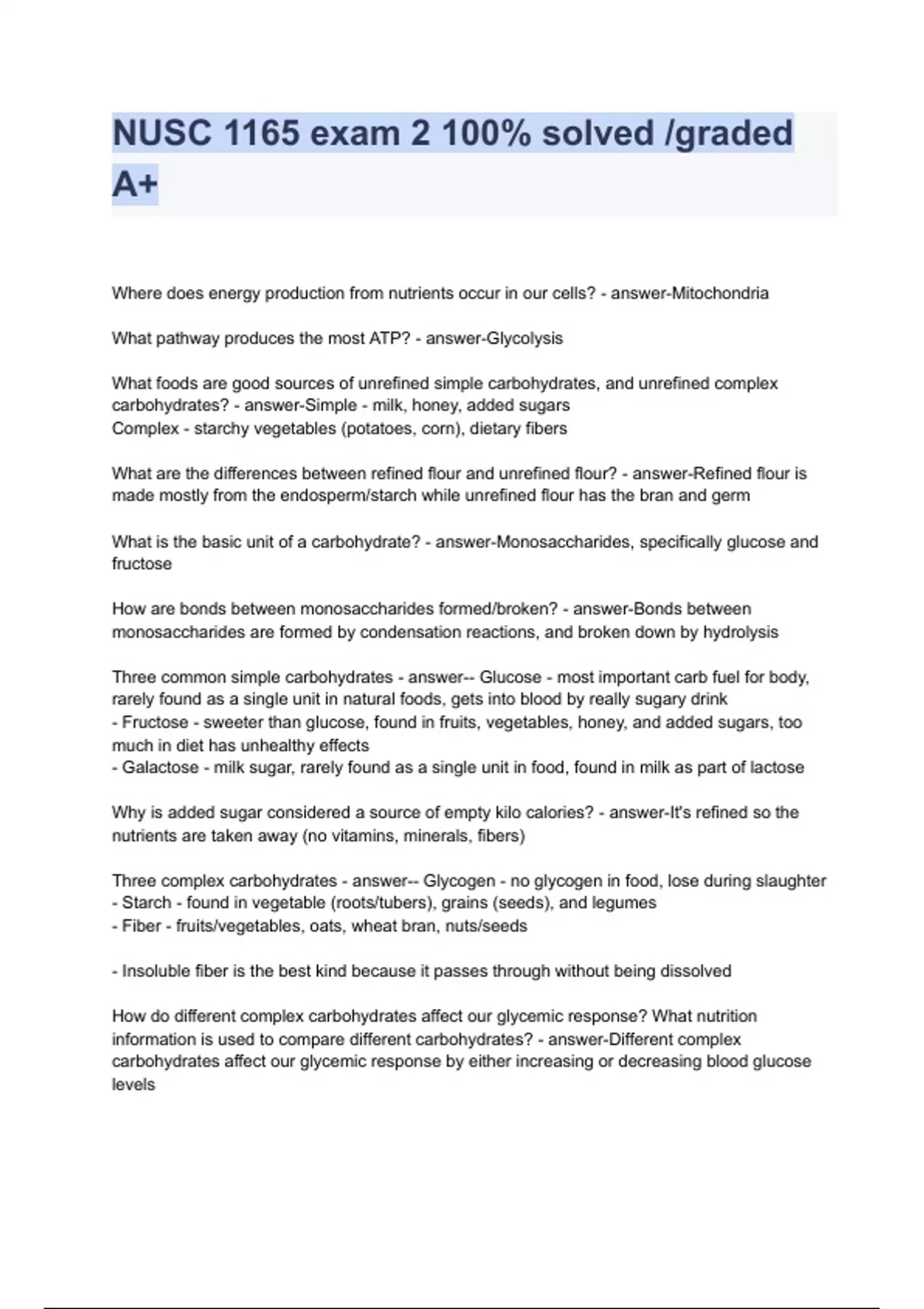 NUSC 1165 exam 2 100% solved /graded A+