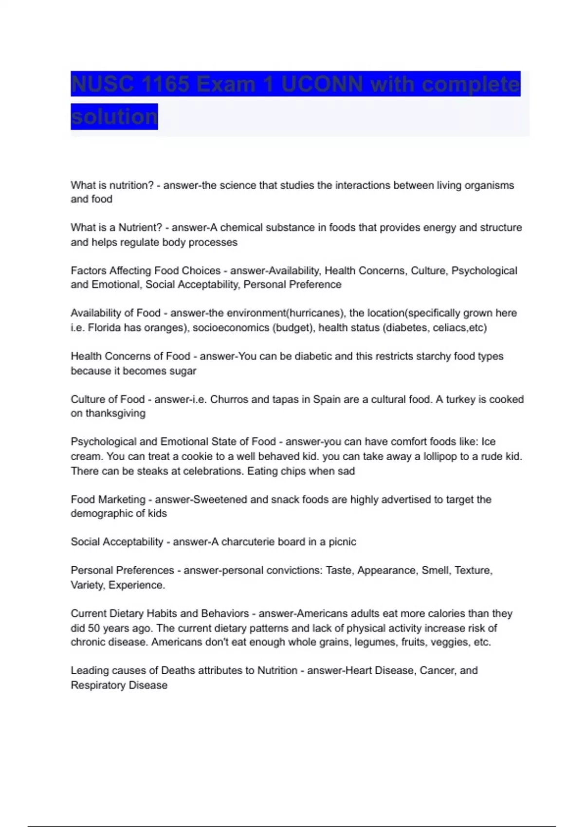 nusc 1165 exam 1 uconn with complete solution