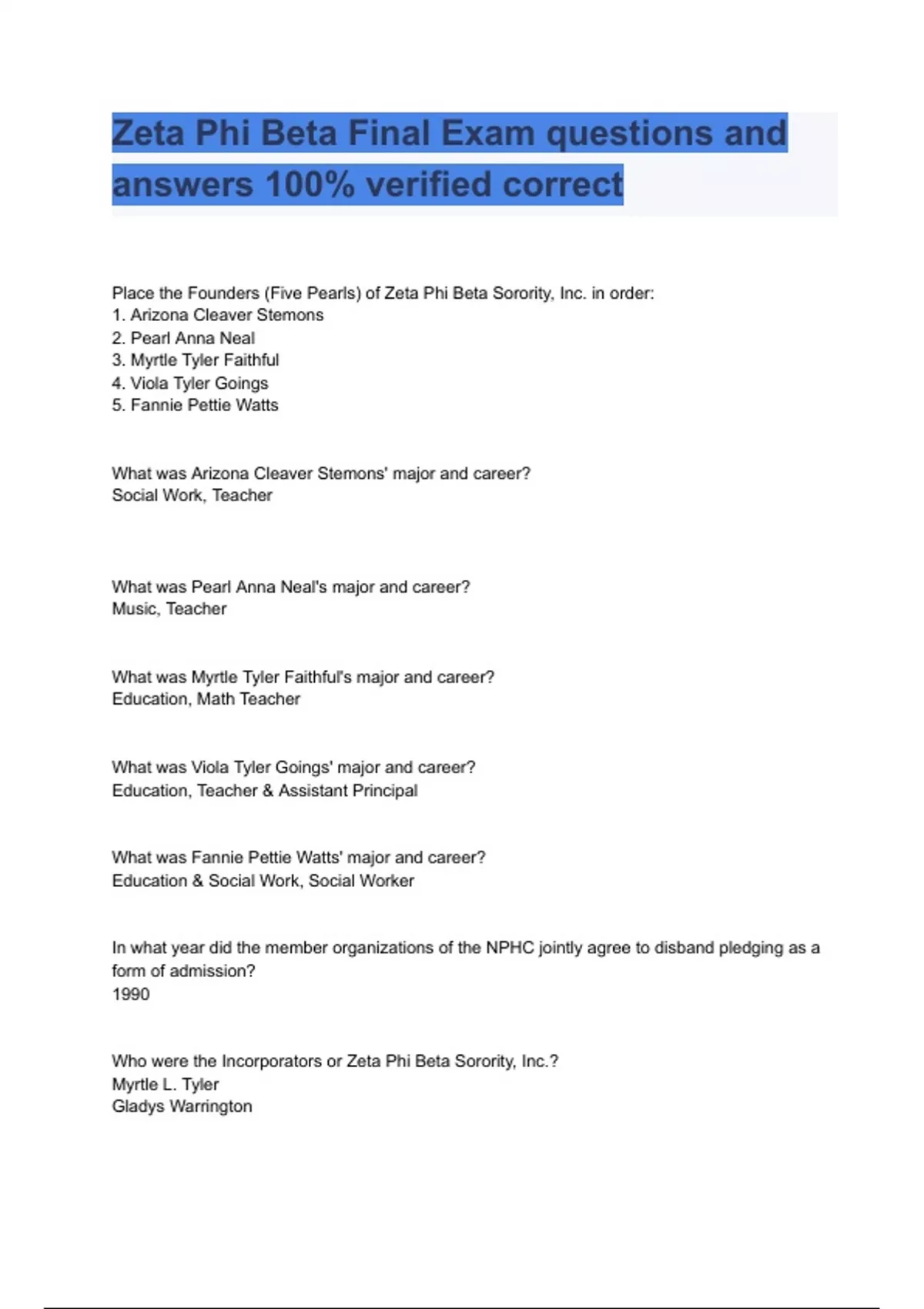 Zeta Phi Beta Final Exam questions and answers 100% verified correct