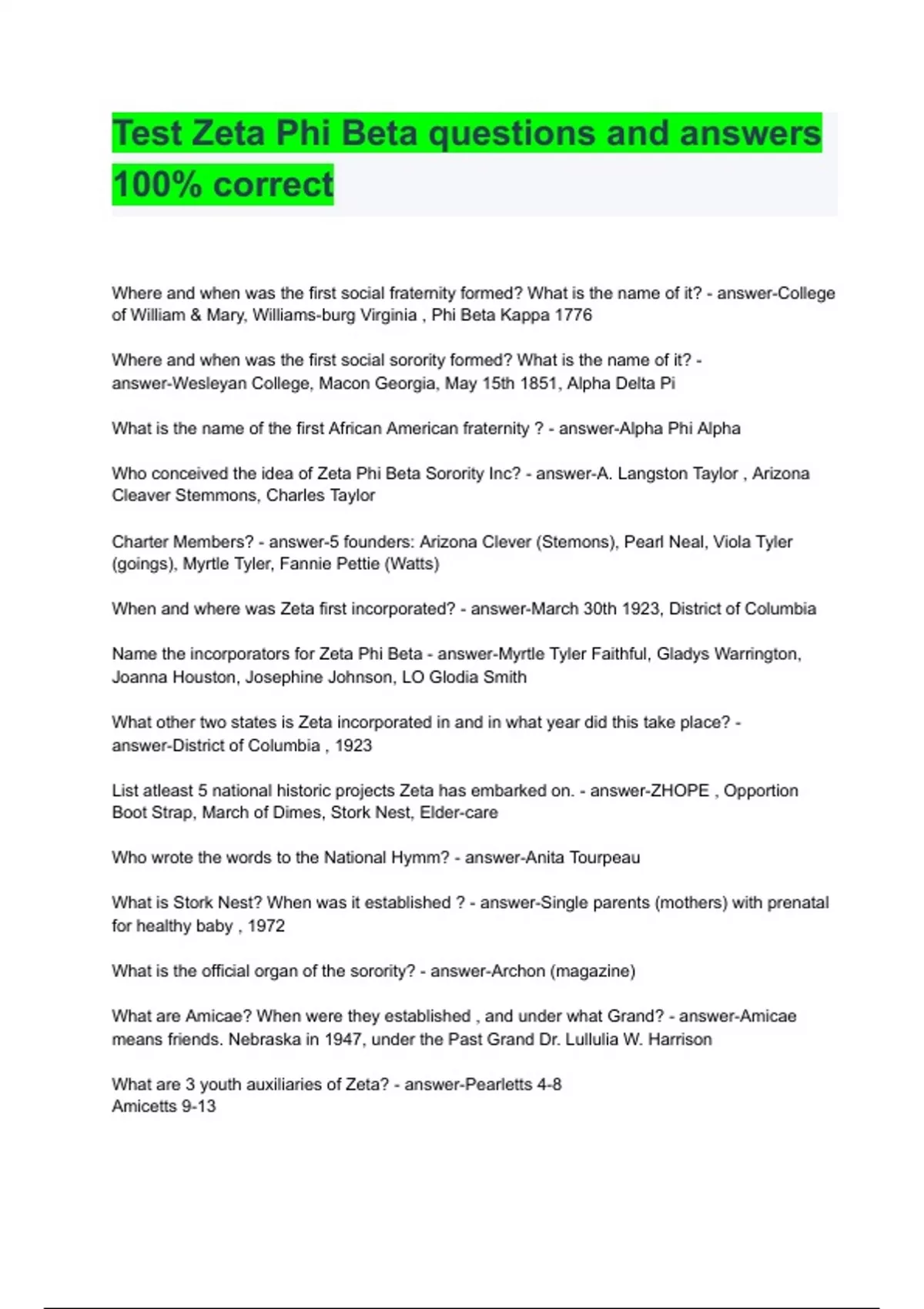 - Tst Zeta Phi Beta qustions and ansers 100% cor