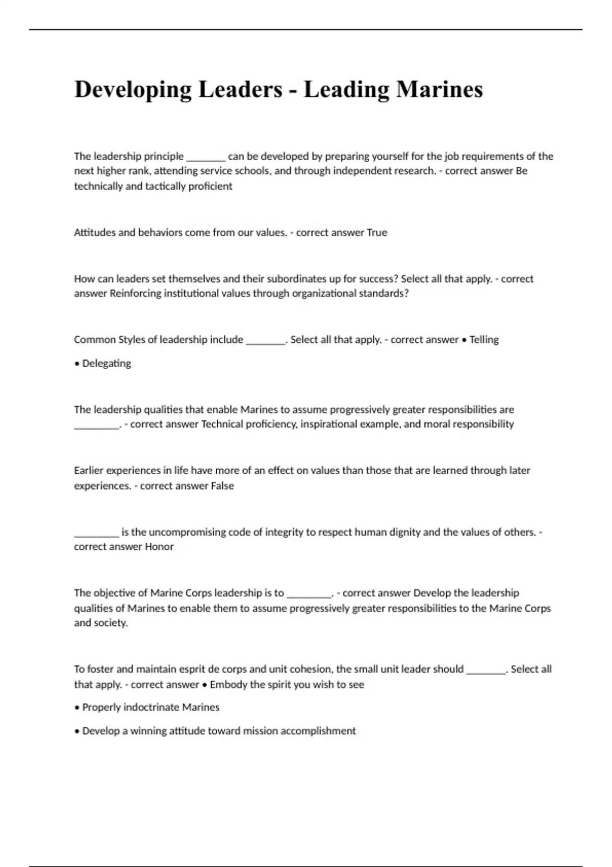 Developing Leaders - Leading Marines Question and answers already passed 2023/2024
