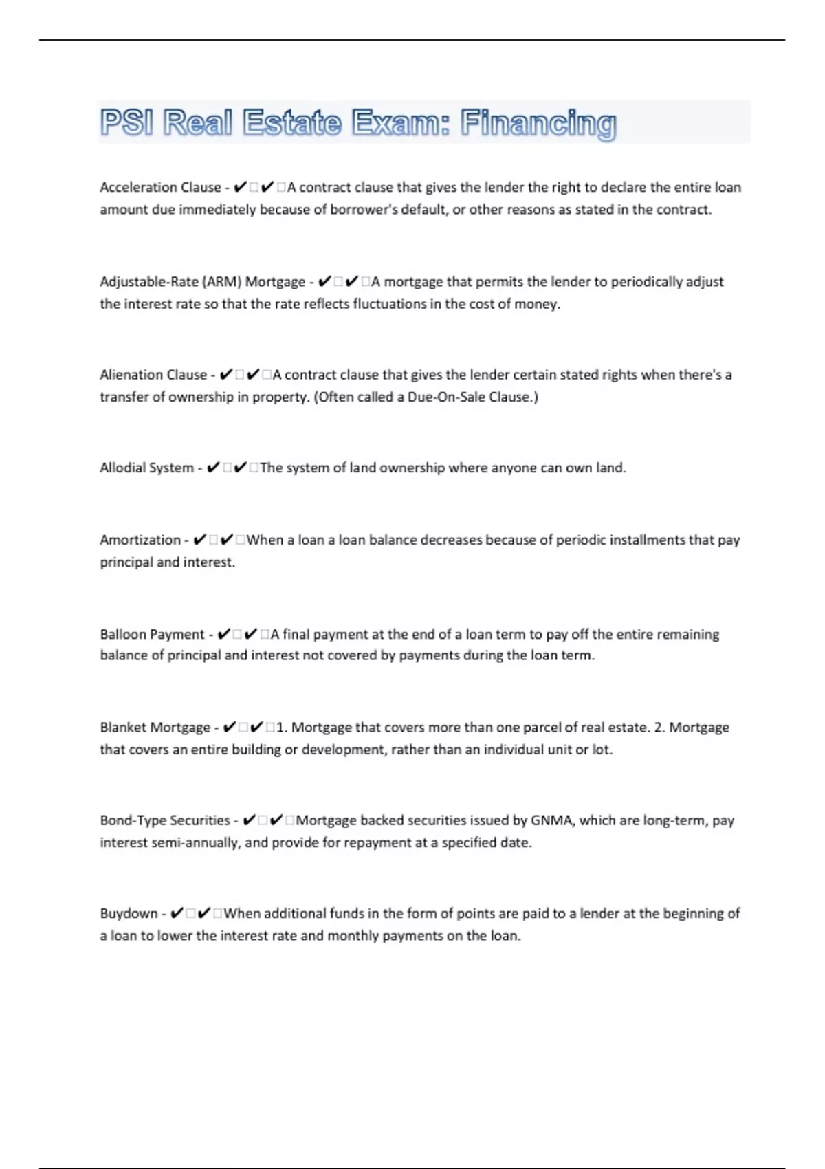 PSI Real Estate Exam: Financing 74 Questions with 100% Correct Answers | Verified