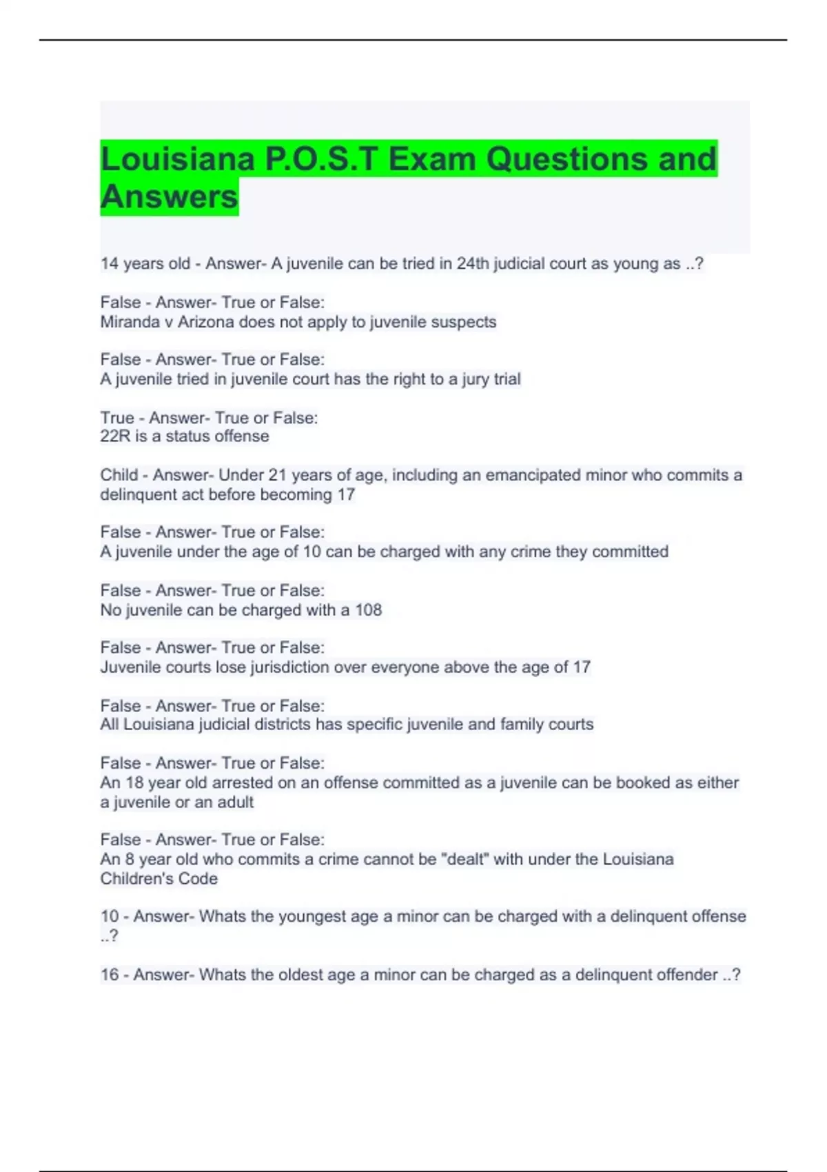 Louisiana P.O.S.T Exam Questions and Answers