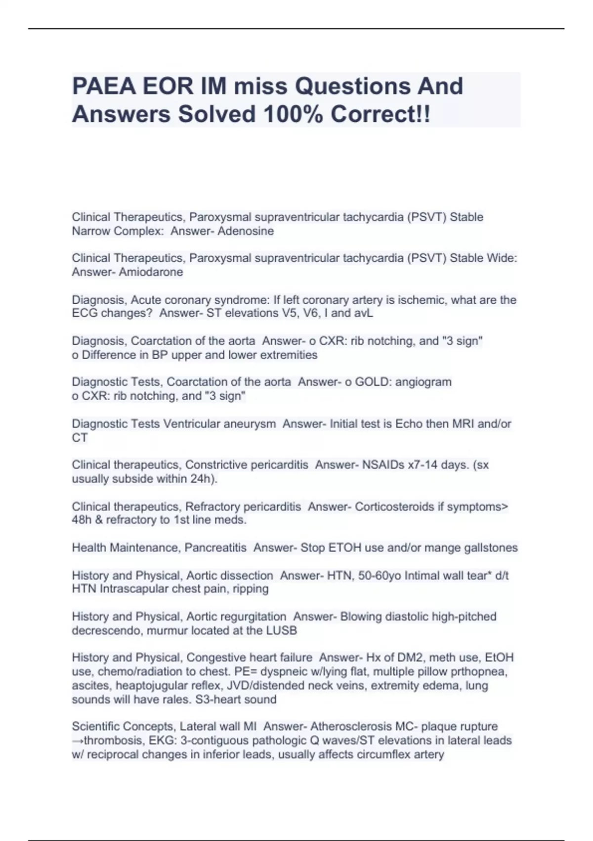 PAEA EOR IM miss Questions And Answers Solved 100% Correct!!