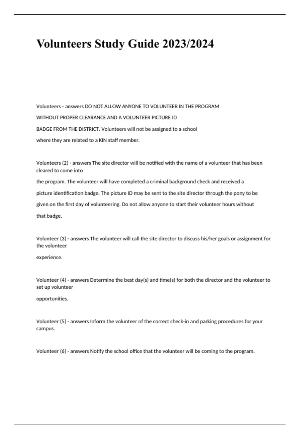 Volunteers Study Guide 2023/2024