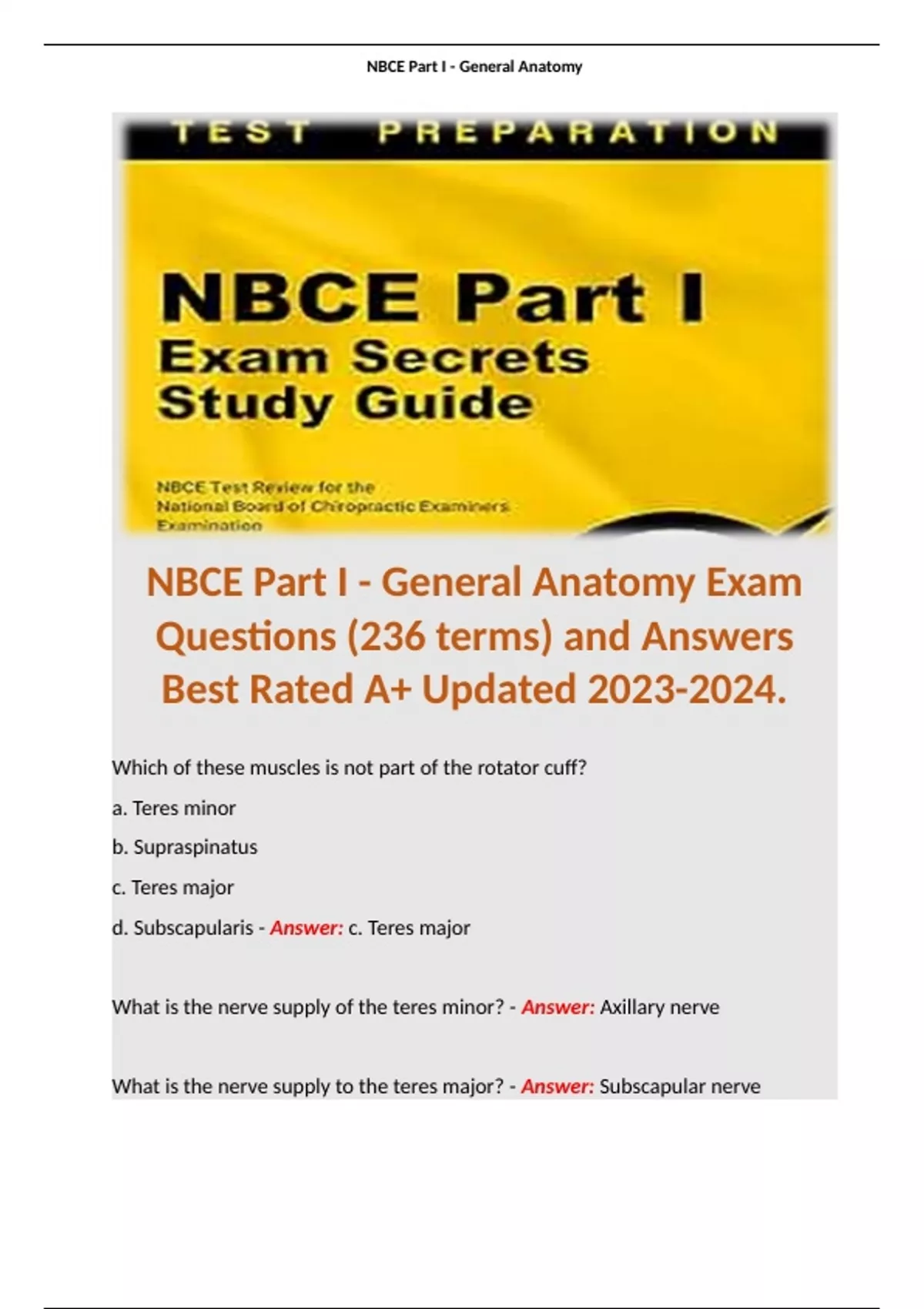 NBCE Part I - General Anatomy Exam Questions (236 terms) and Answers Best Rated A+ Updated .