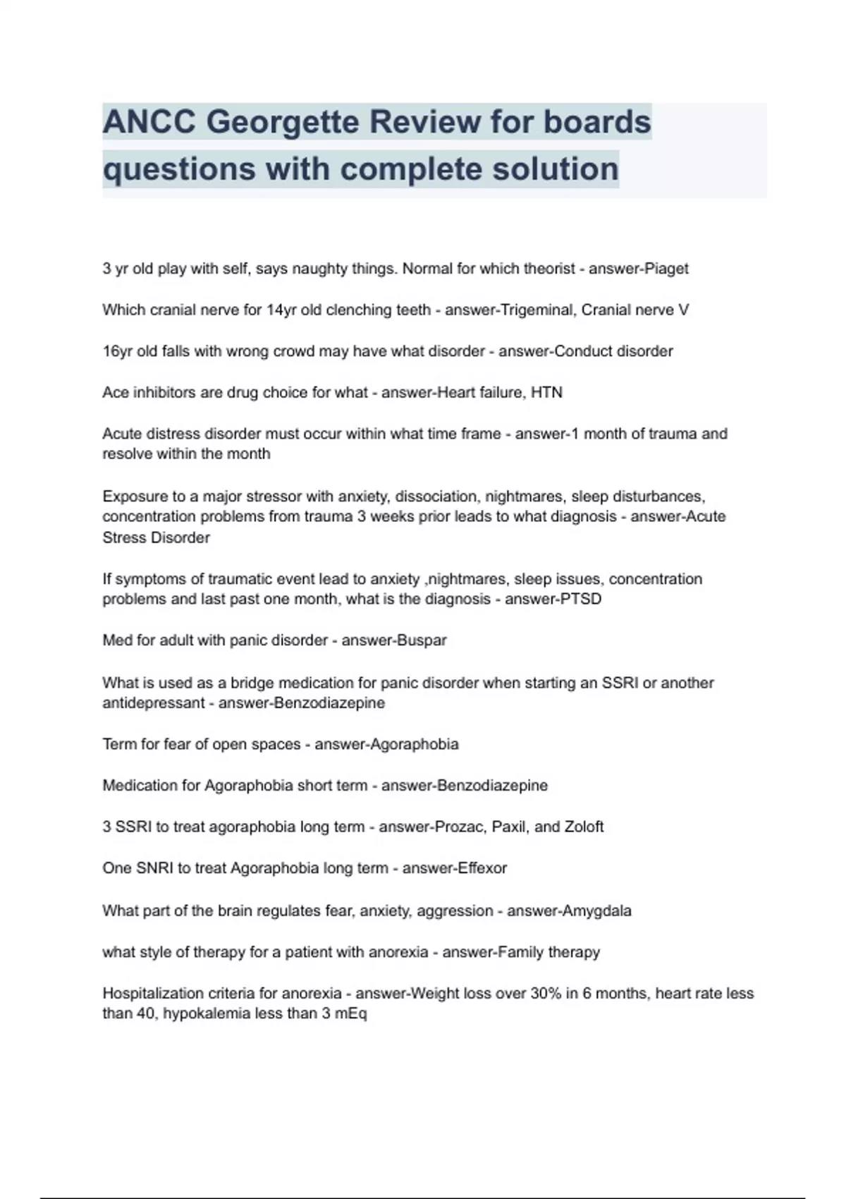 ANCC Georgette Review for boards questions with complete solution