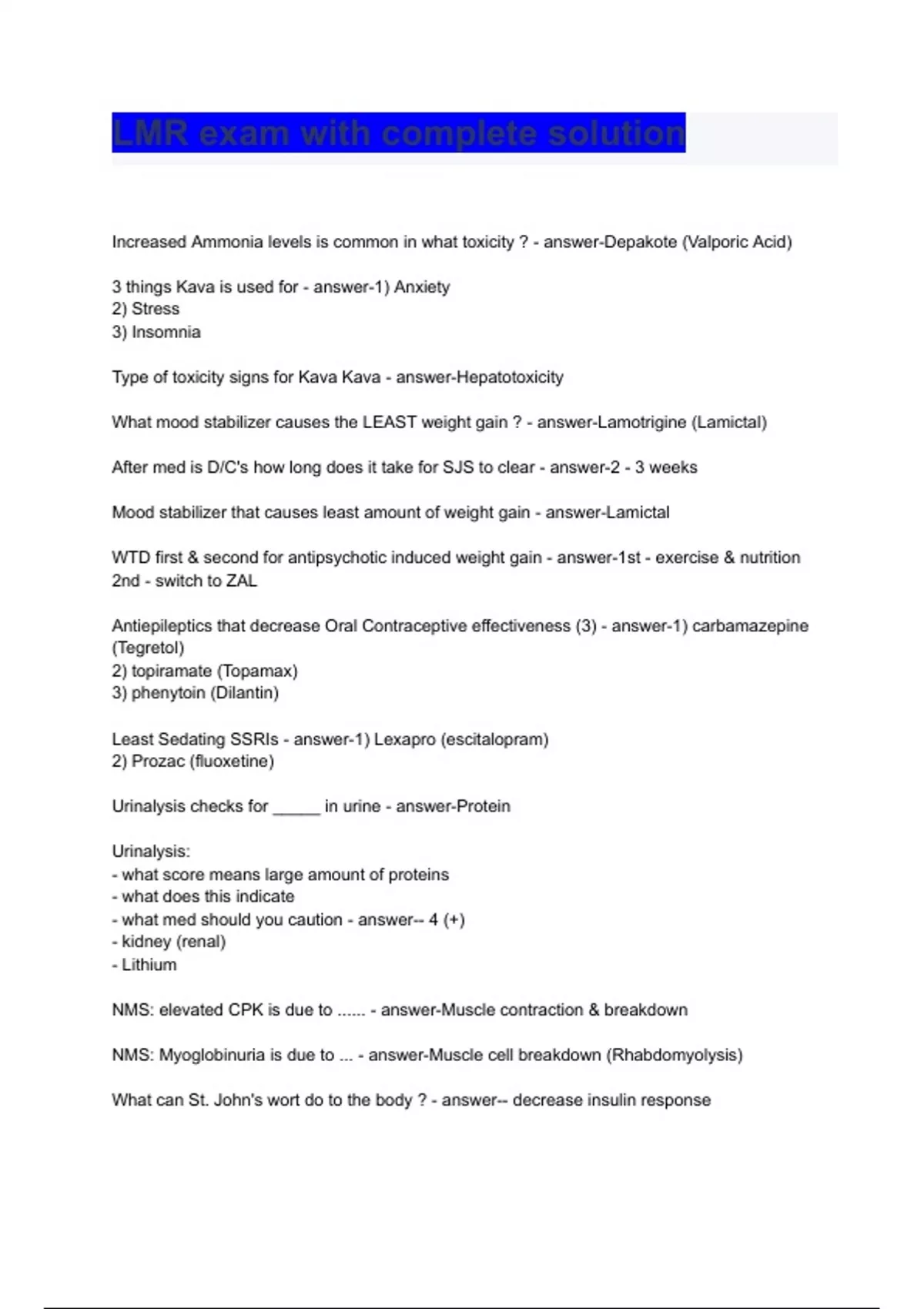 lmr exam with complete solution