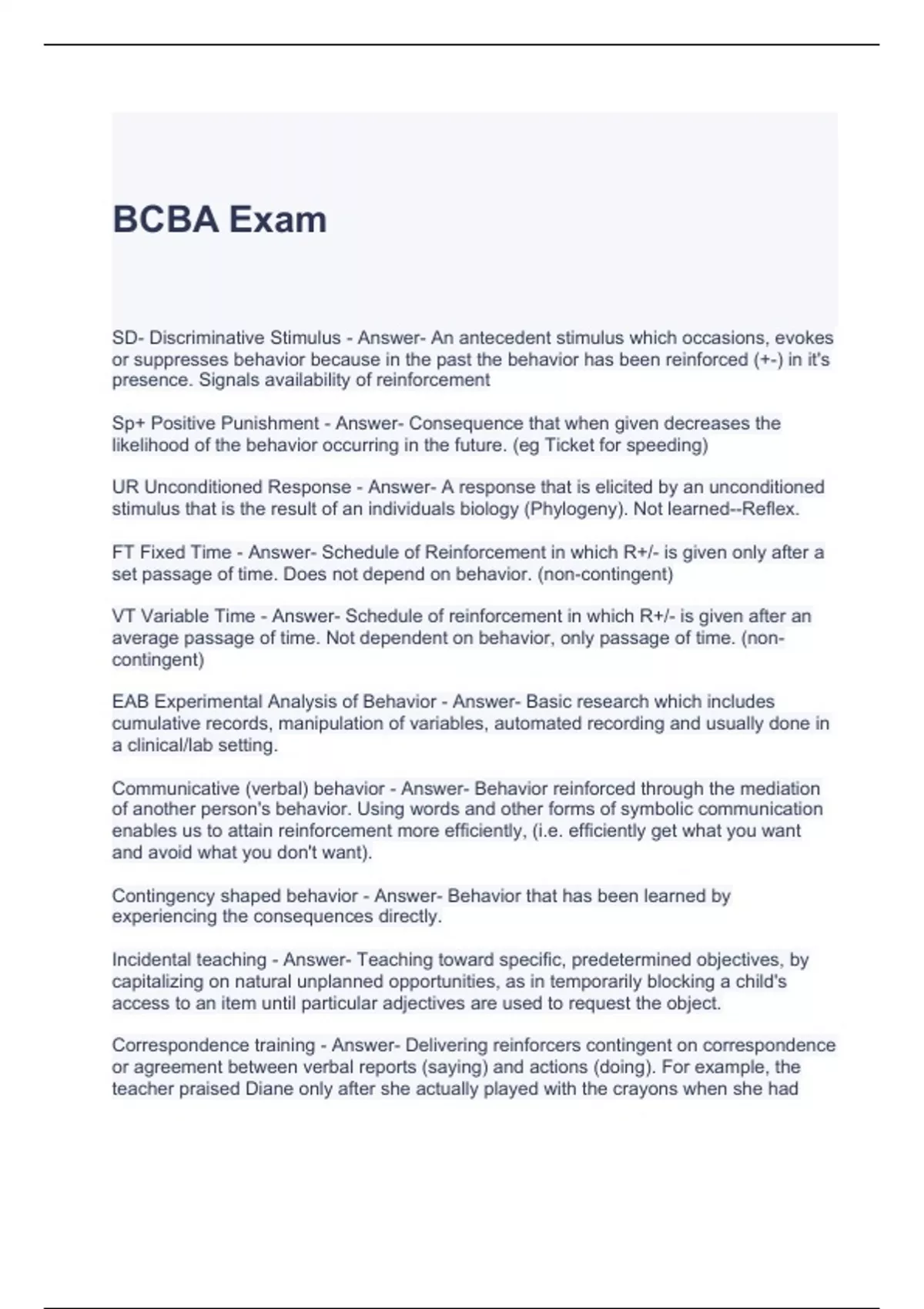 Exam of 56 pages for the course BCBA at BCBA (BCBA Exam)