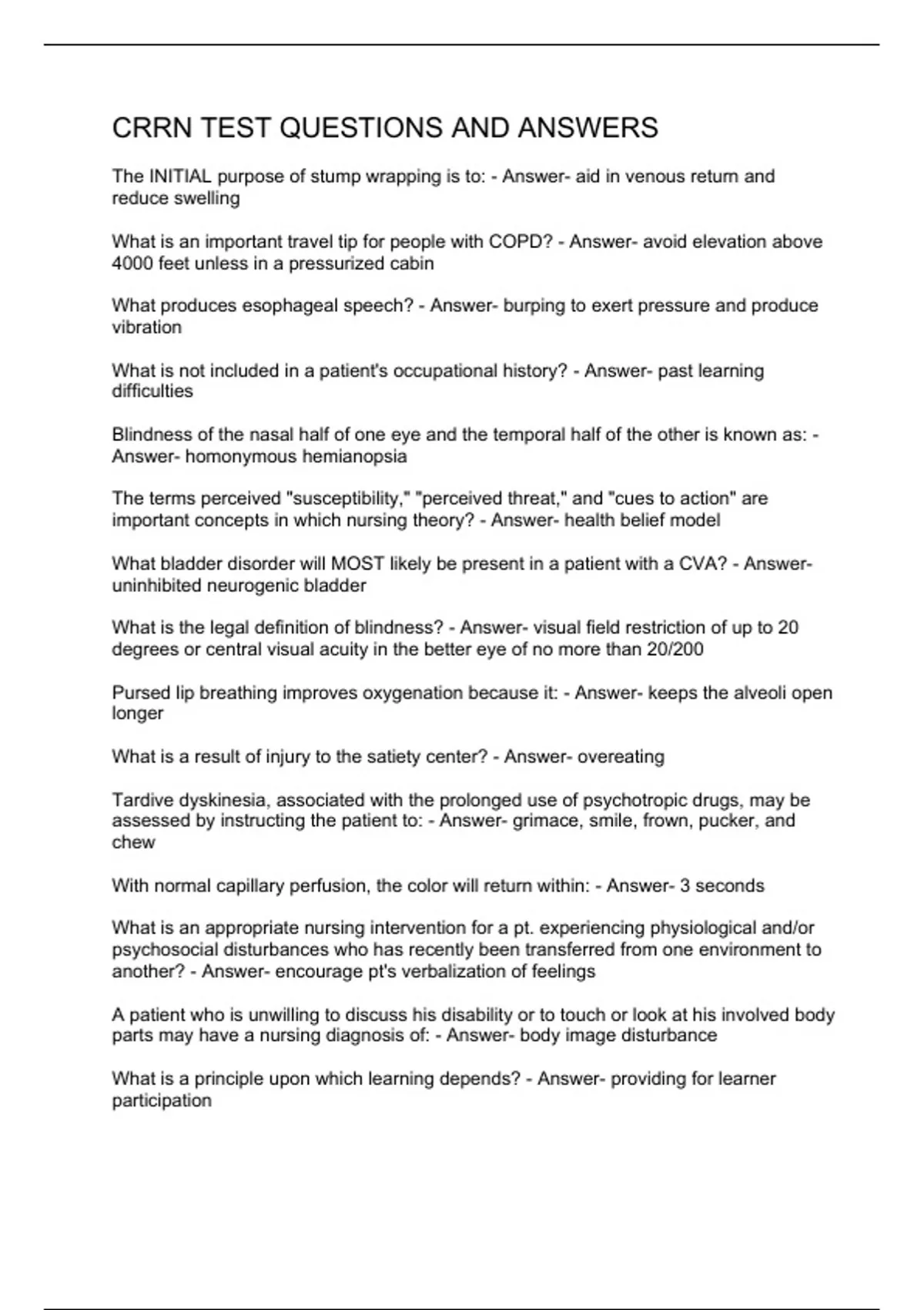 crrn test questions and answers