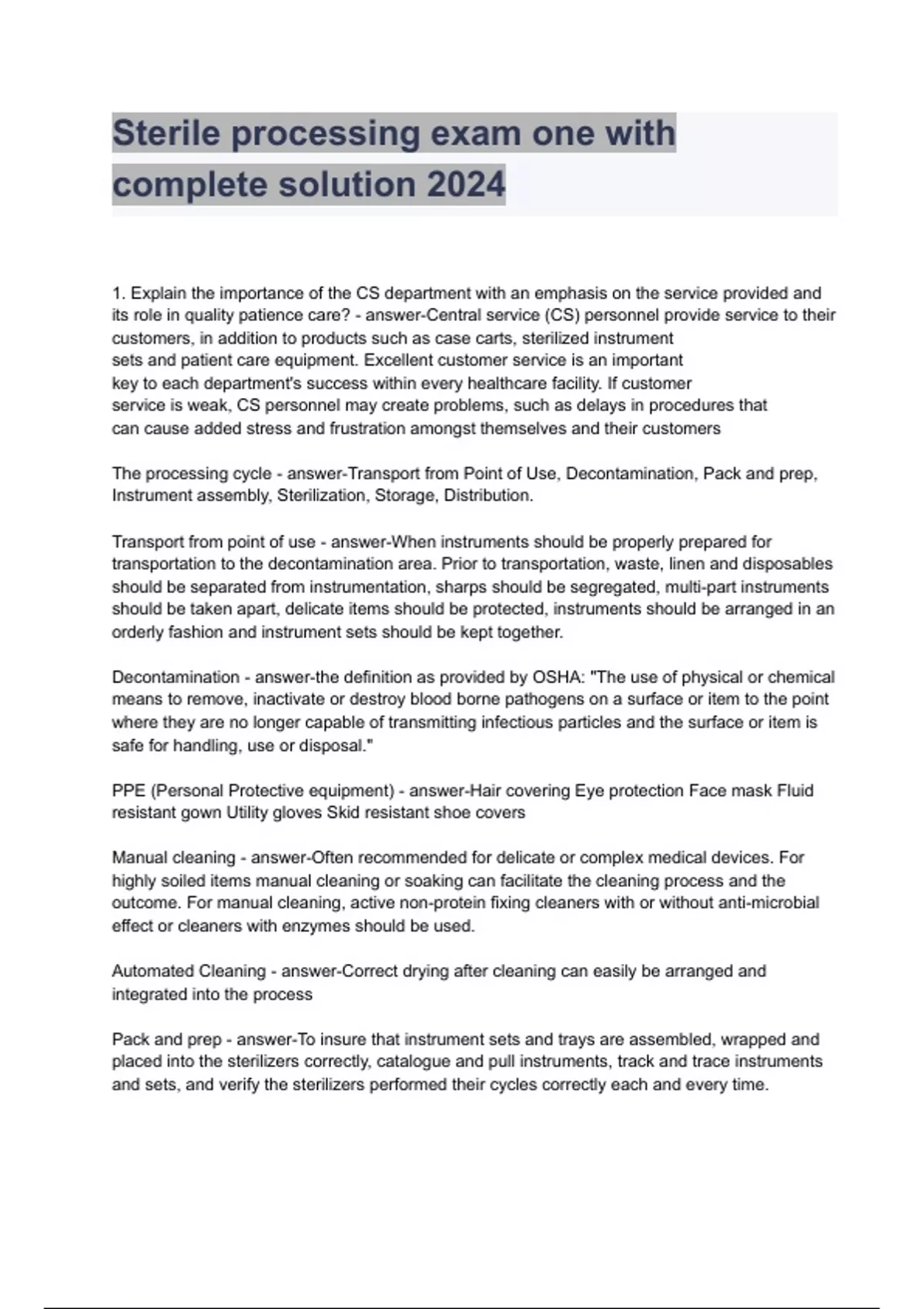 - Sterile processing exm one with complete solution