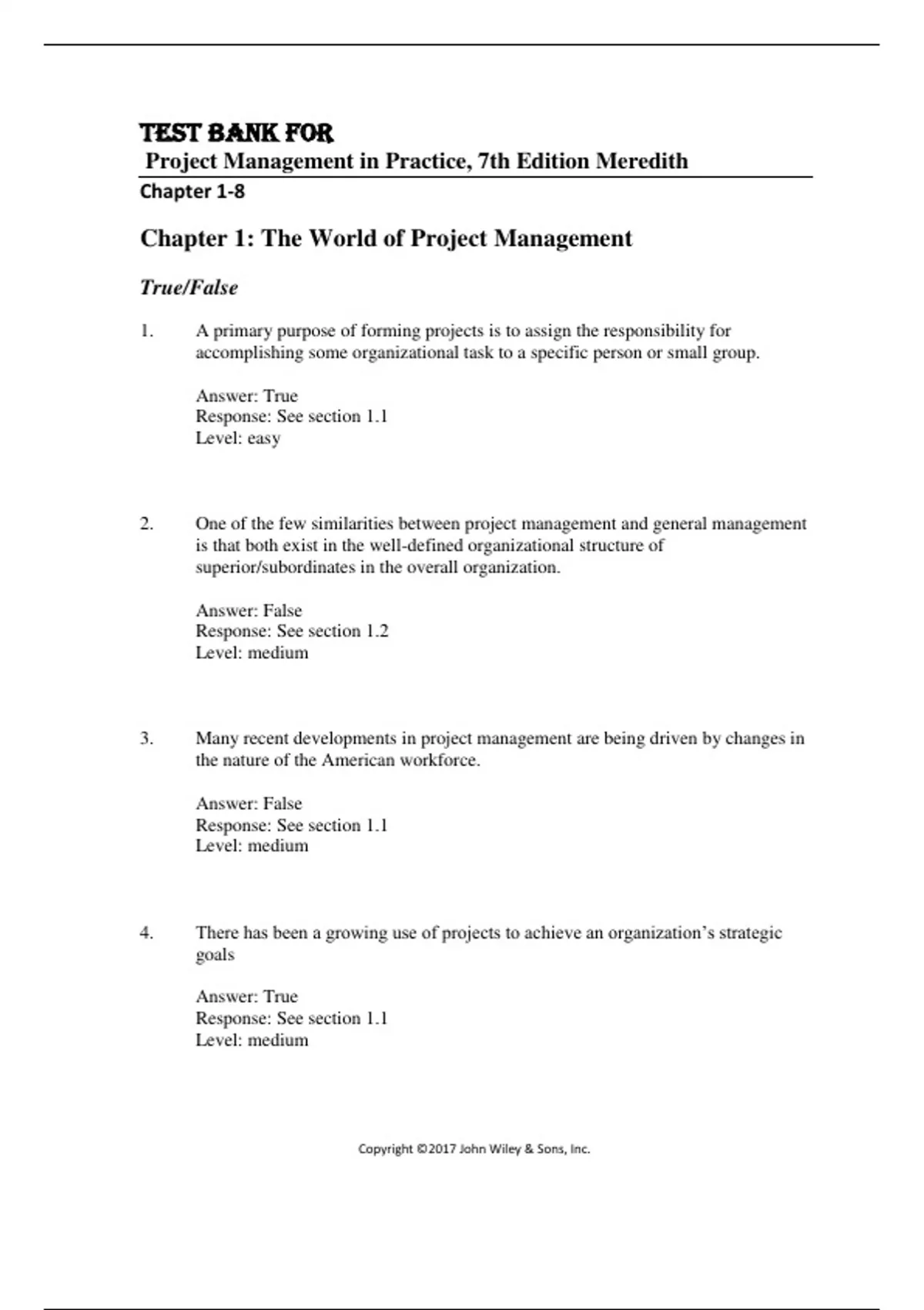 Test Bank For Project Management in Practice, 7th Edition by Jack R. Meredith, Scott M. Shafer