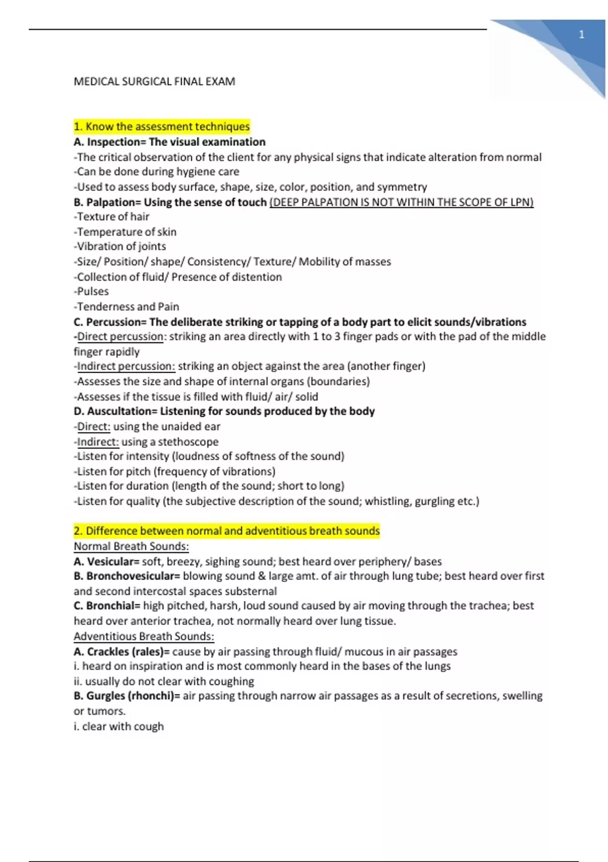 nur health ass medical surgical final exam
