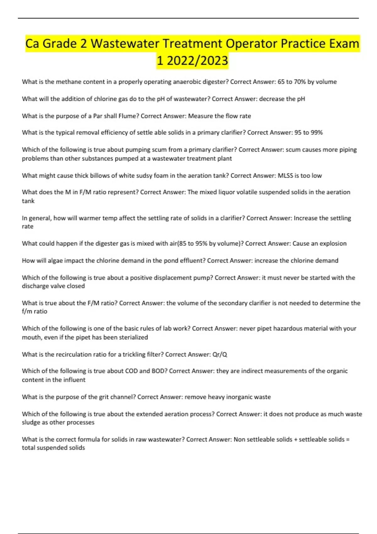 Ca Grade 2 Wastewater Treatment Operator Practice Exam 1 2022/2023