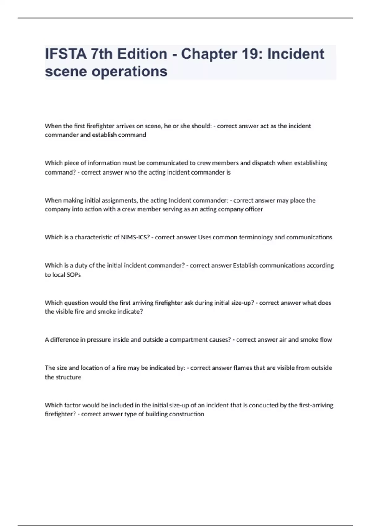 IFSTA 7th Edition - Chapter 19: Incident scene operations question n answers 2023/2024