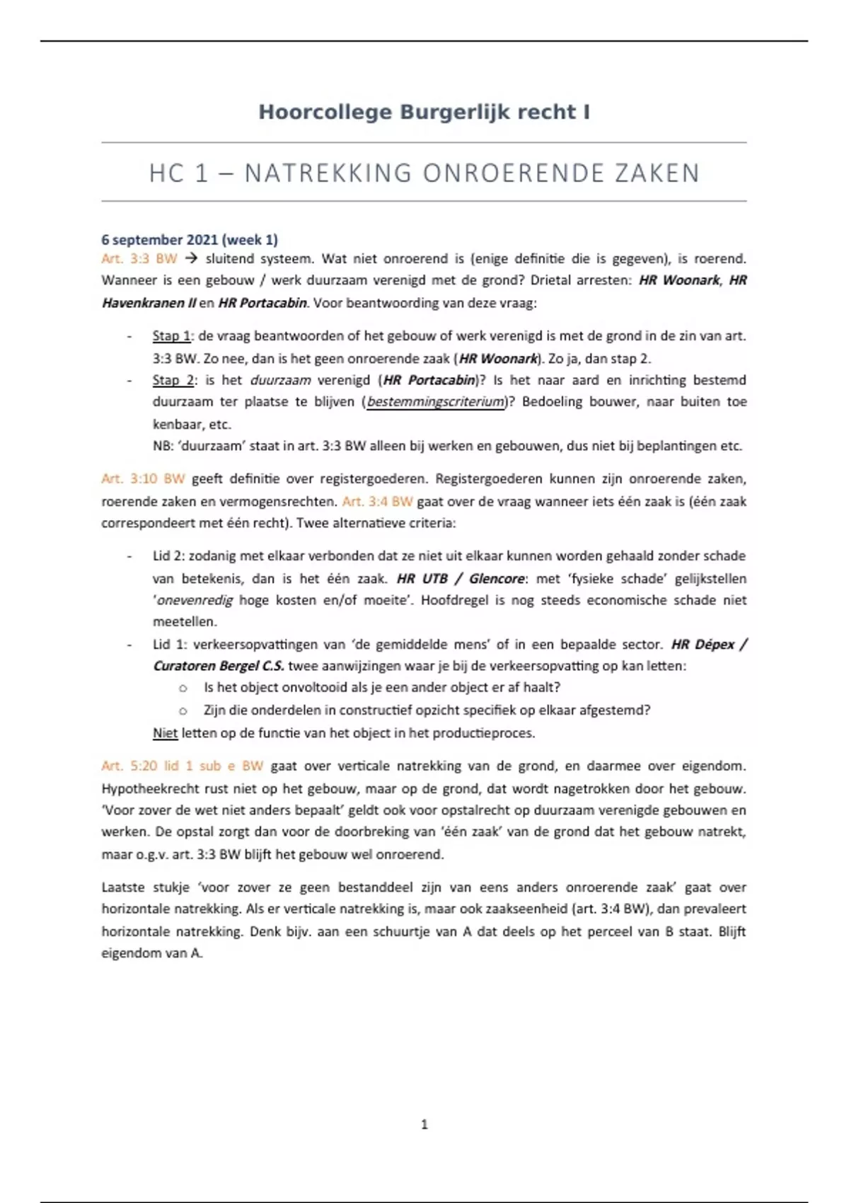 HC 1 – NATREKKING ONROERENDE ZAKEN