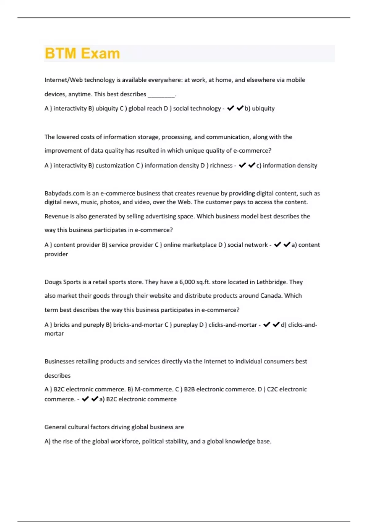 BTM Exam Questions With 100% Correct Answers.