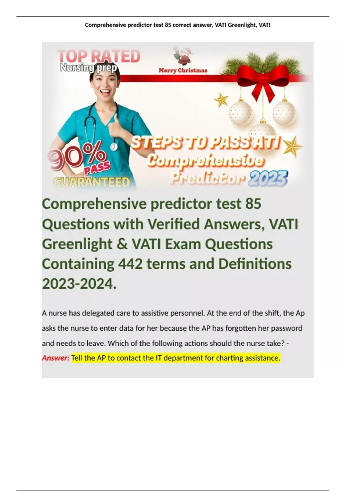 , Comprehensive predictor test 85 correct answer, VATI Greenlight, VATI
