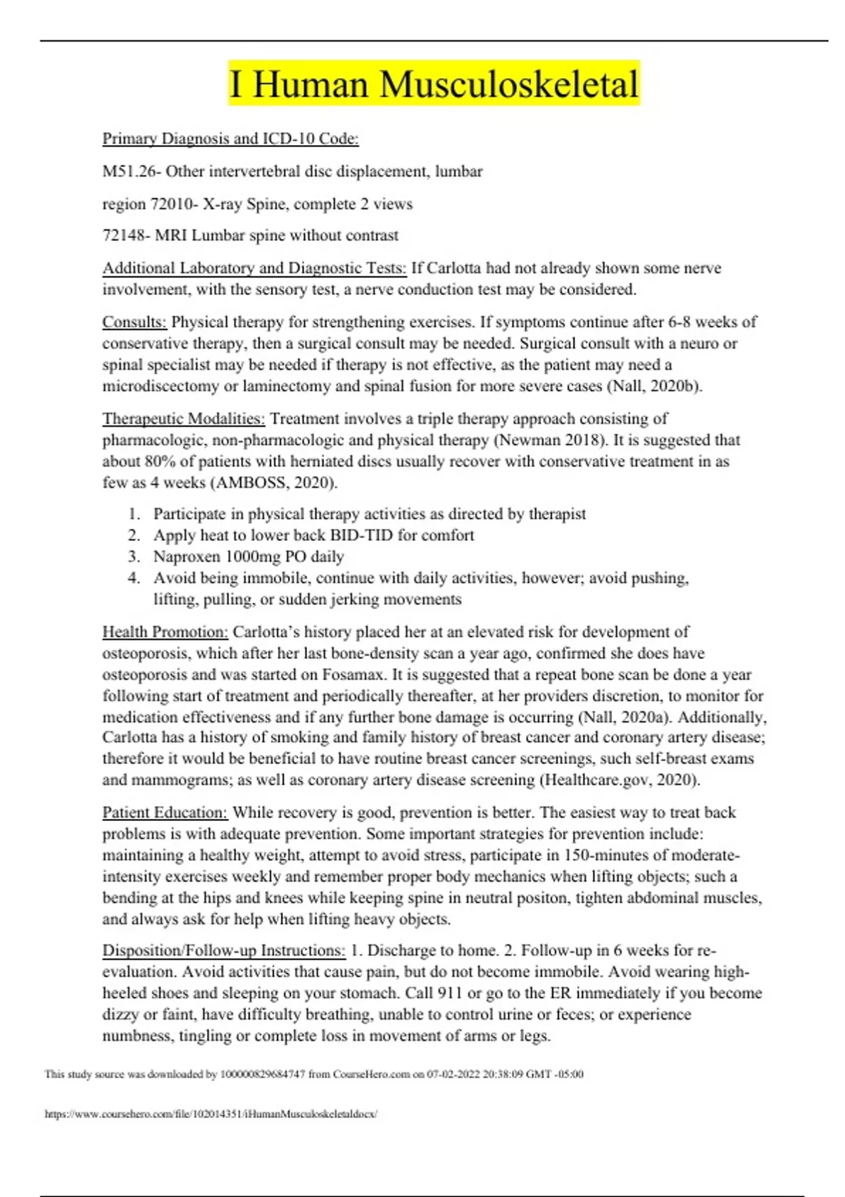 NRNP 6531 Week 9 Assignment; i-Human Case Study; Evaluating and Managing Musculoskeletal Condition.docx