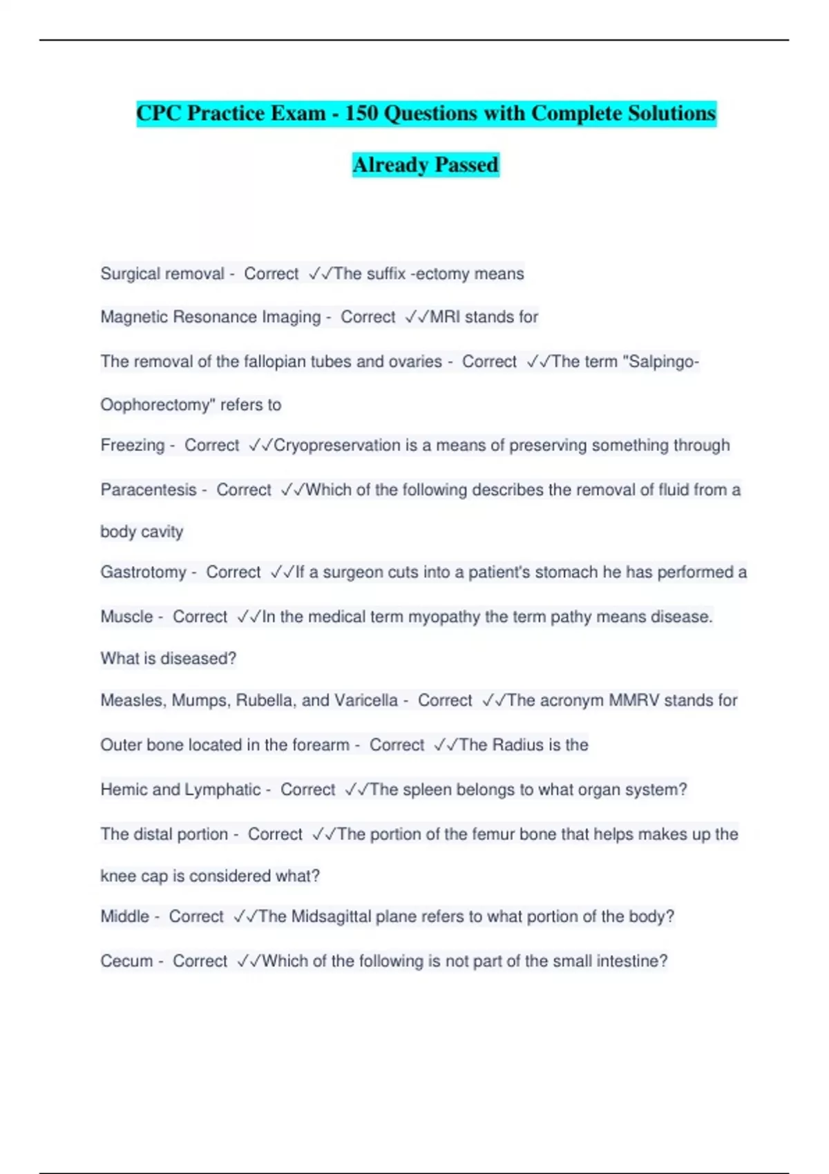 CPC Practice Exam - 150 Questions with Complete Solutions Already Passed