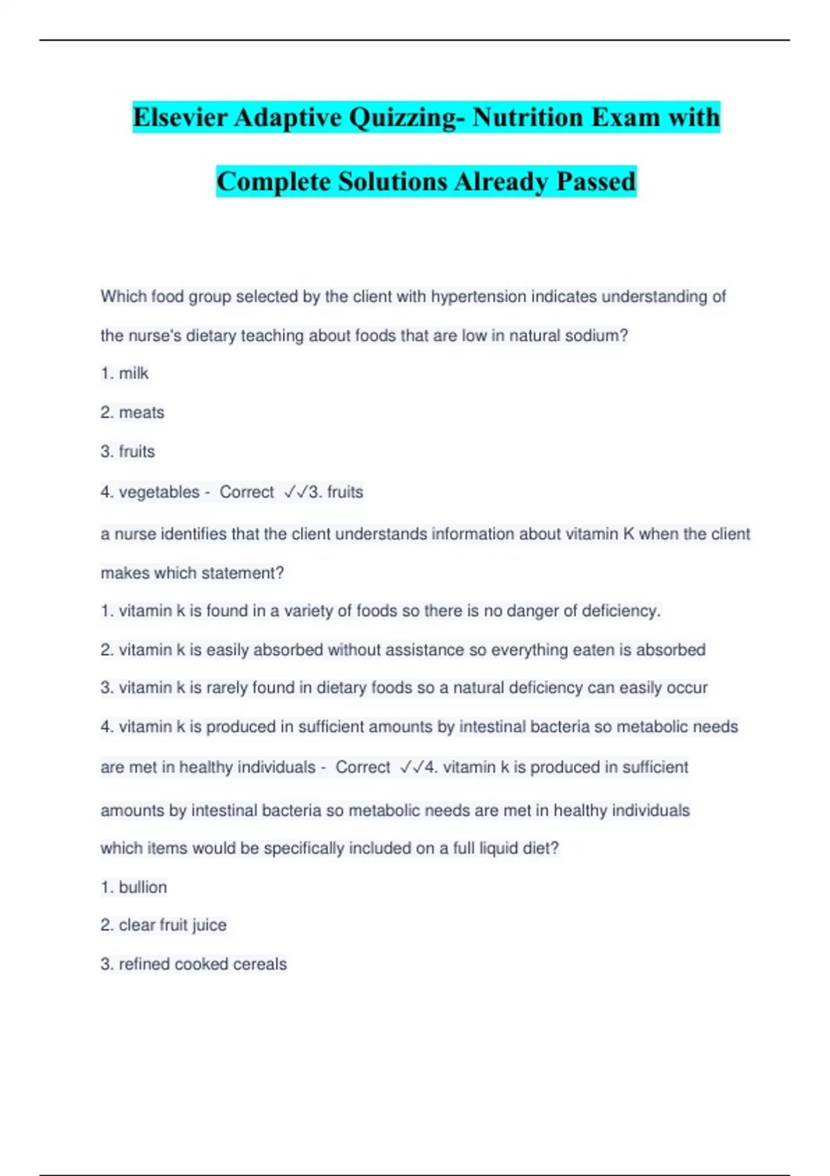 Elsevier Adaptive Quizzes with Complete Solutions Already Passed