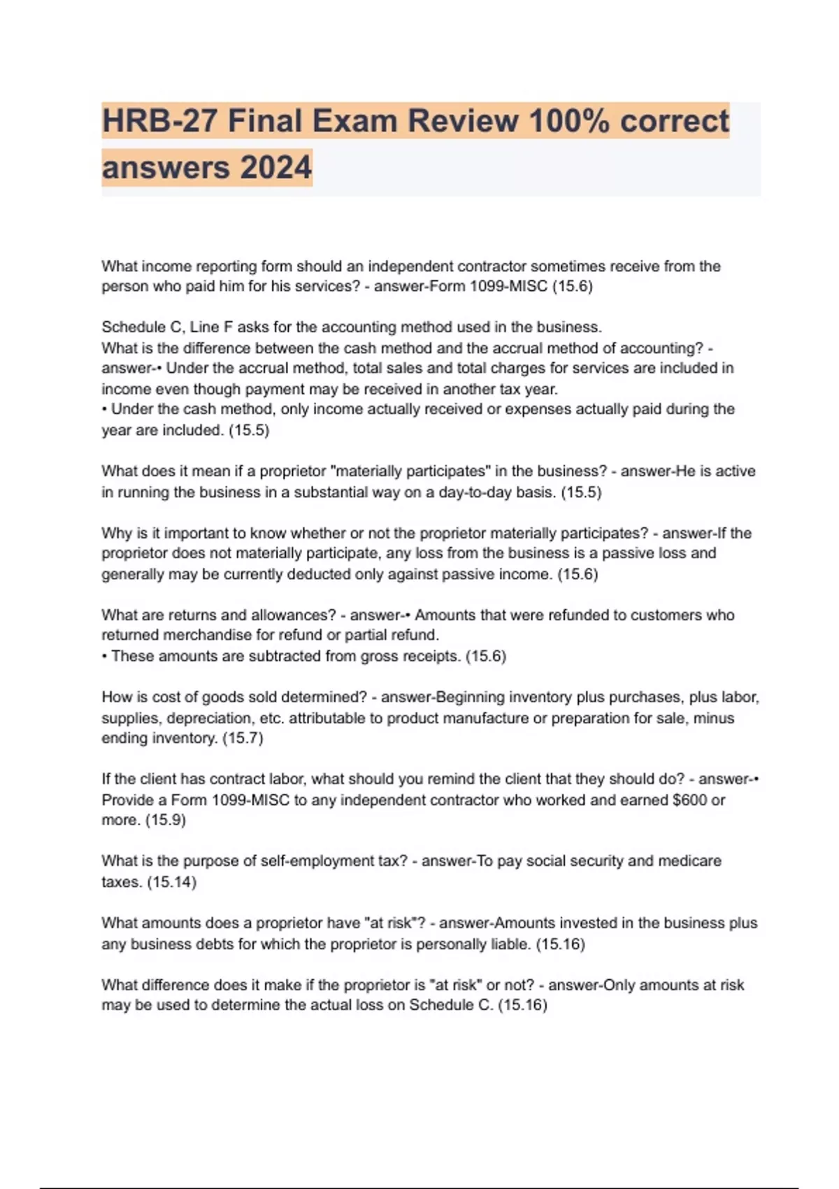 HRB-27 Final Exam Review 100% correct answers 2024