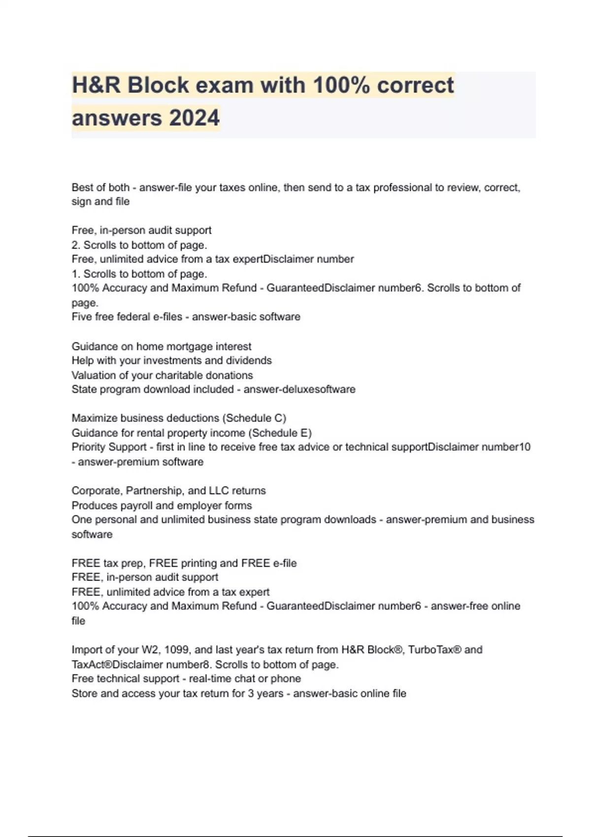 H&R Block exam with 100% correct answers 2024