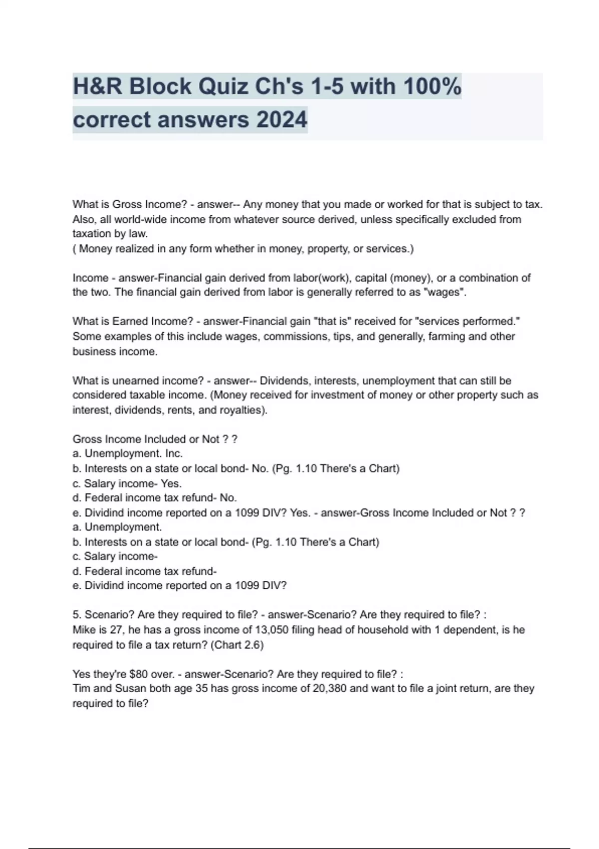 H&R Block Quiz Ch's 1-5 with 100% correct answers 2024