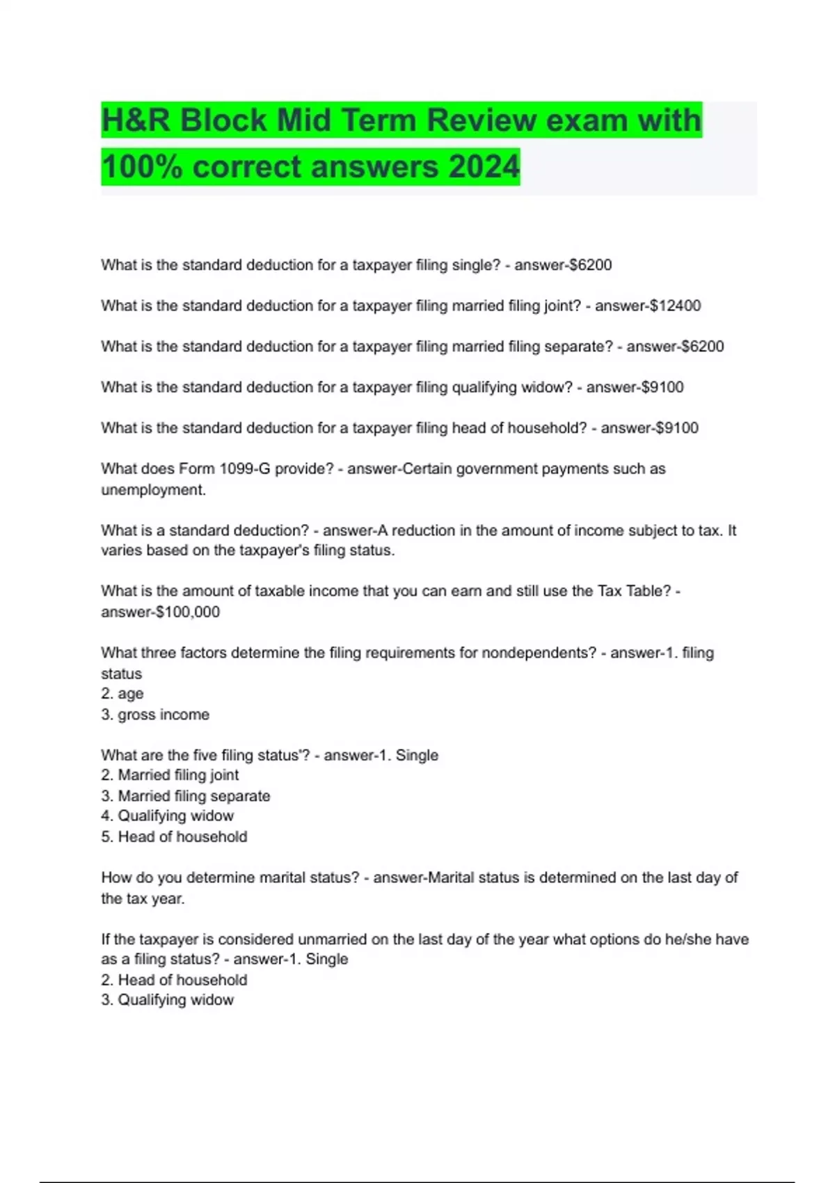 H&R Block Mid Term Review exam with 100% correct answers 2024