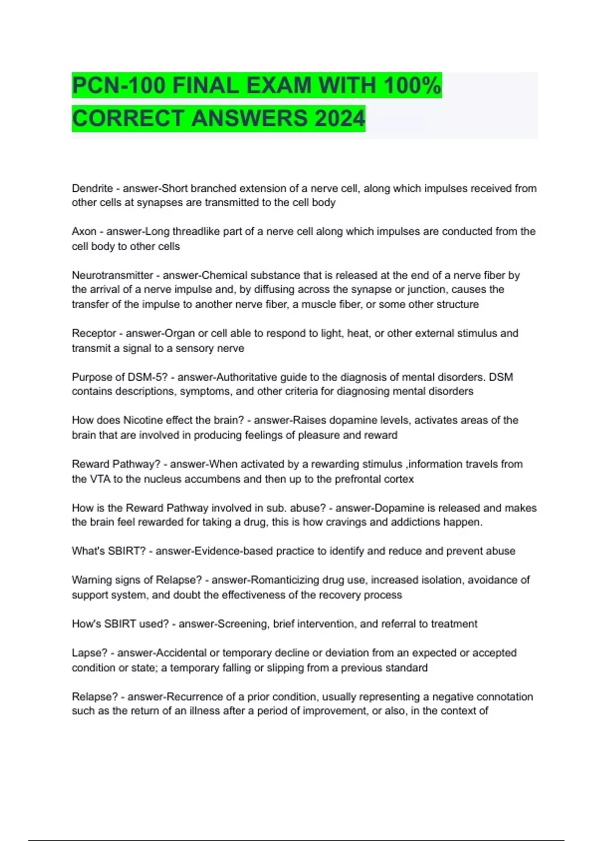 PCN-100 FINAL EXAM WITH 100% CORRECT ANSWERS 2024