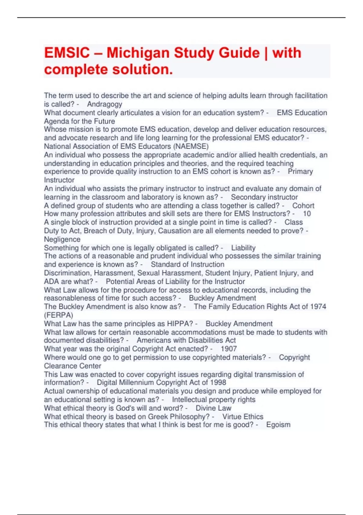 EMSIC – Michigan Study Guide | with complete solution.