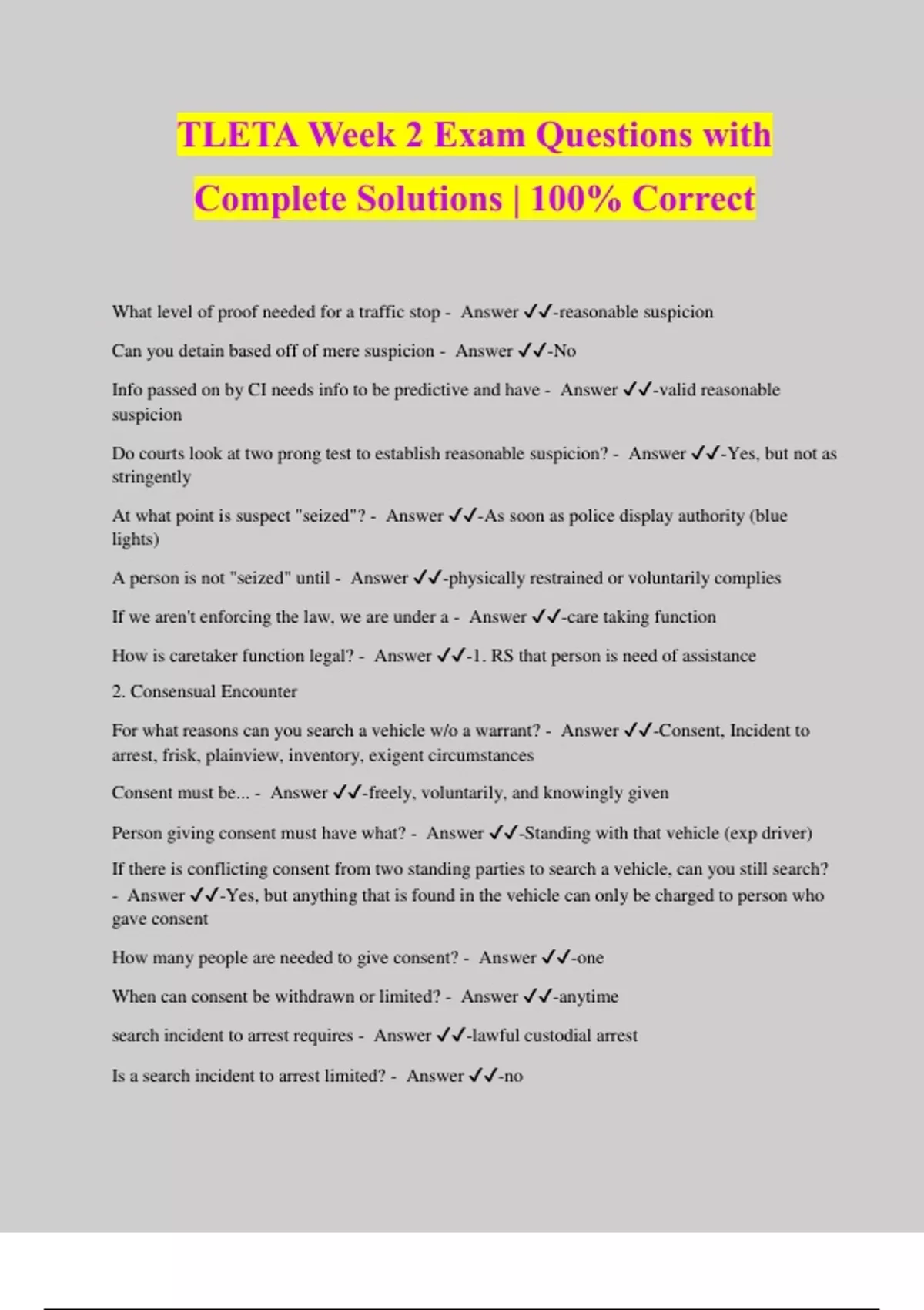 TLETA Week 2 Exam Questions with Complete Solutions | 100% Correct