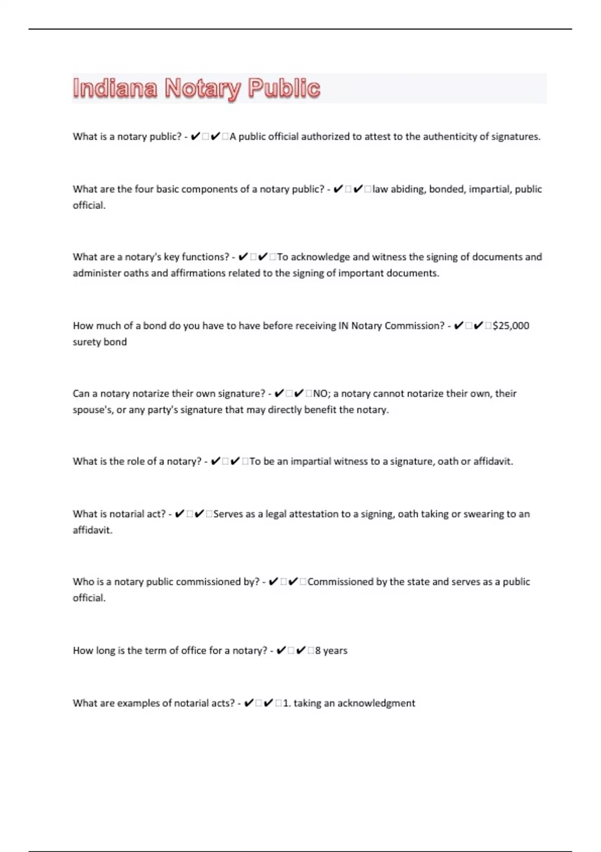 Indiana Notary Public 67 Questions with 100% Correct Answers | Updated | Guaranteed A+