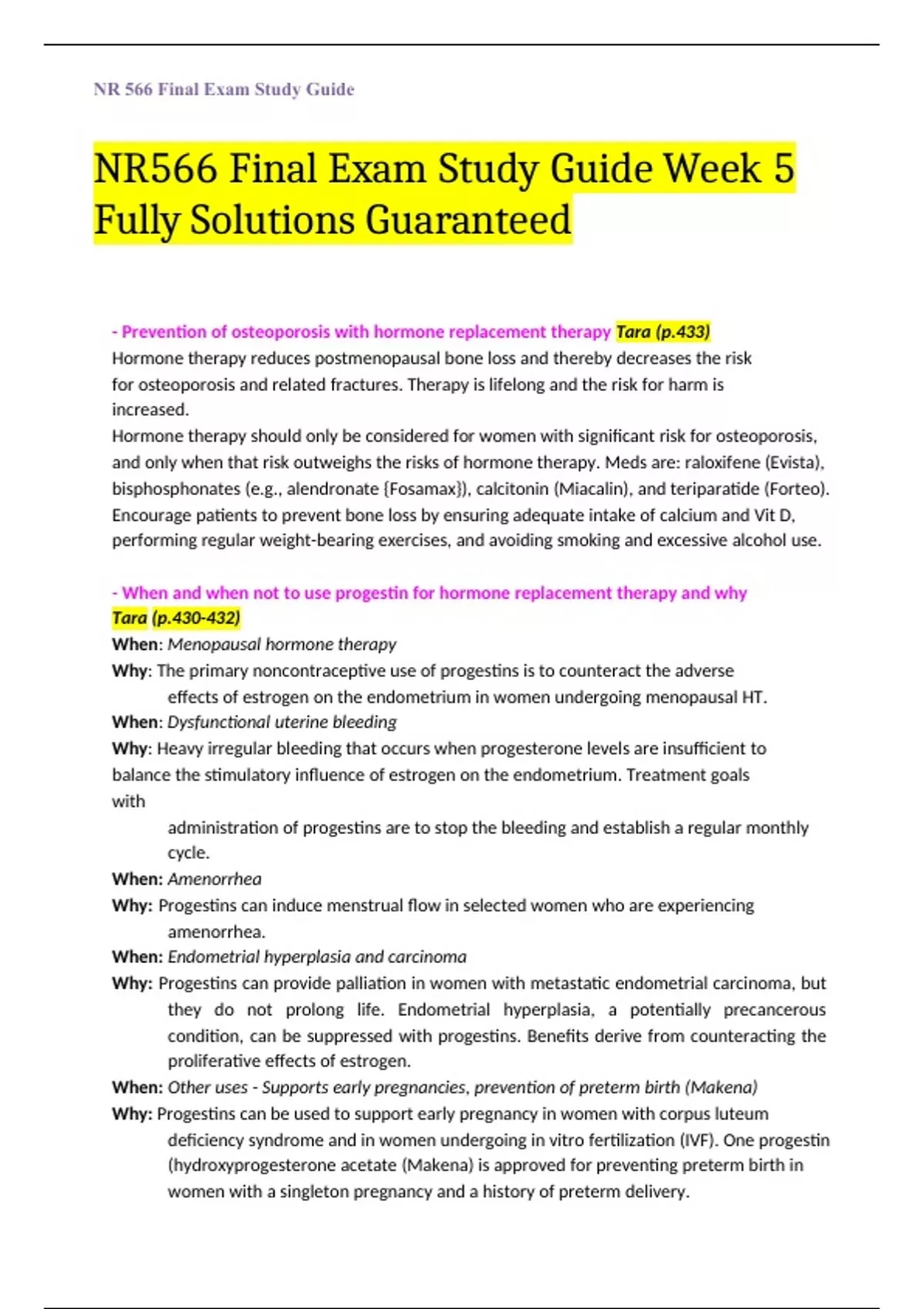 NR566 Final Exam Study Guide Week 5