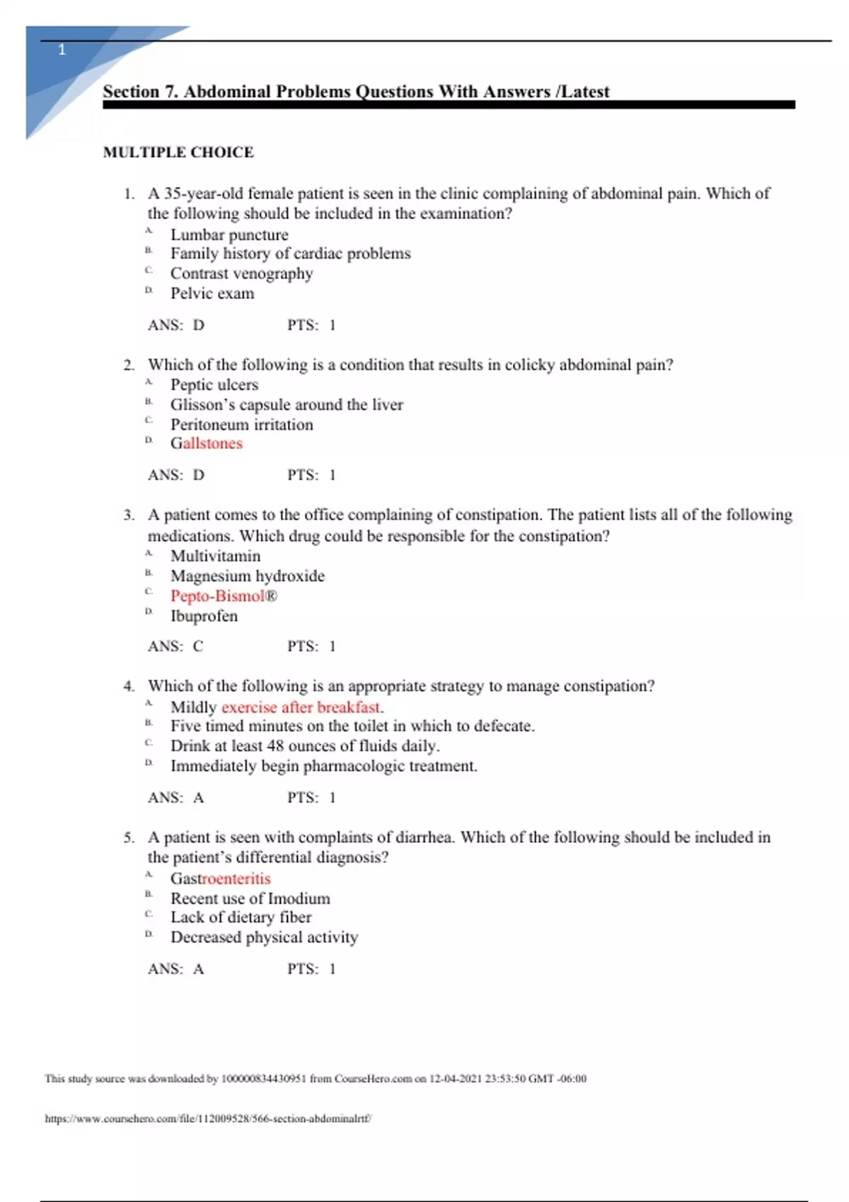 Section 7. Abdominal Problems Questions With Answers /Latest