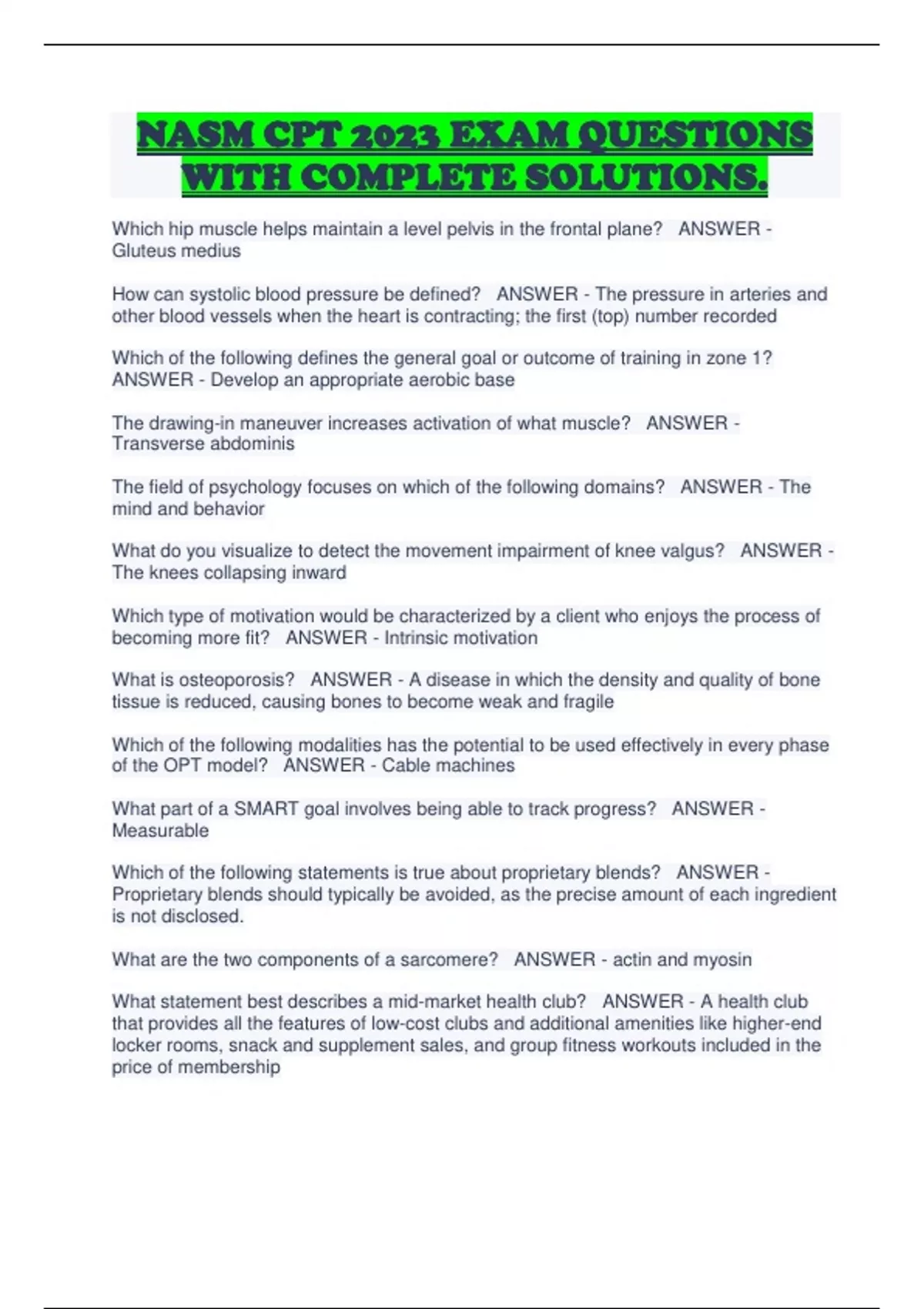 NASM CPT 2023 EXAM QUESTIONS WITH COMPLETE SOLUTIONS. NASM CPT 2023 EXAM QUESTIONS WITH COMPLETE SOLUTIONS. NASM CPT 2023 EXAM QUESTIONS WITH COMPLETE SOLUTIONS. NASM CPT 2023 EXAM QUESTIONS WITH COMPLETE SOLUTIONS. NASM CPT 2023 EXAM QUESTIONS WITH COMPLETE SOLUTIONS. NASM CPT 2023 EXAM QUESTIONS WITH COMPLETE SOLUTIONS. NASM CPT 2023 EXAM QUESTIONS WITH COMPLETE SOLUTIONS. NASM CPT 2023 EXAM QUESTIONS WITH COMPLETE SOLUTIONS. NASM CPT 2023 EXAM QUESTIONS WITH COMPLETE SOLUTIONS. NASM CPT 2023 EXAM QUESTIONS WITH COMPLETE SOLUTIONS. NASM CPT 2023 EXAM QUESTIONS WITH COMPLETE SOLUTIONS. NASM CPT 2023 EXAM QUESTIONS WITH COMPLETE SOLUTIONS. NASM CPT 2023 EXAM QUESTIONS WITH COMPLETE SOLUTIONS. NASM CPT 2023 EXAM QUESTIONS WITH COMPLETE SOLUTIONS.NASM CPT 2023 EXAM QUESTIONS WITH COMPLETE SOLUTIONS. NASM CPT 2023 EXAM QUESTIONS WITH COMPLETE SOLUTIONS. NASM CPT 2023 EXAM QUESTIONS WITH COMPLETE SOLUTIONS. NASM CPT 2023 EXAM QUESTIONS WITH COMPLETE SOLUTIONS. NASM CPT 2023 EXAM QUESTIONS WITH COMPLETE SOLUTIONS. NASM CPT 2023 EXAM QUESTIONS WITH COMPLETE SOLUTIONS. NASM CPT 2023 EXAM QUESTIONS WITH COMPLETE SOLUTIONS.