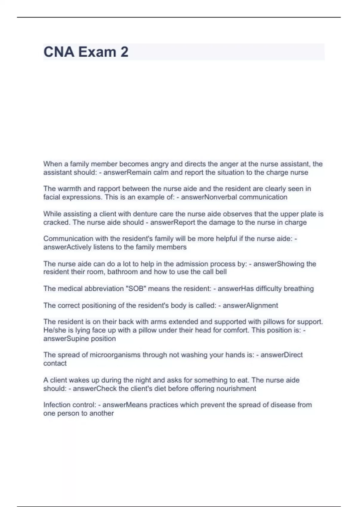 Exam of 7 pages for the course cna at cna (CNA Exam 2)