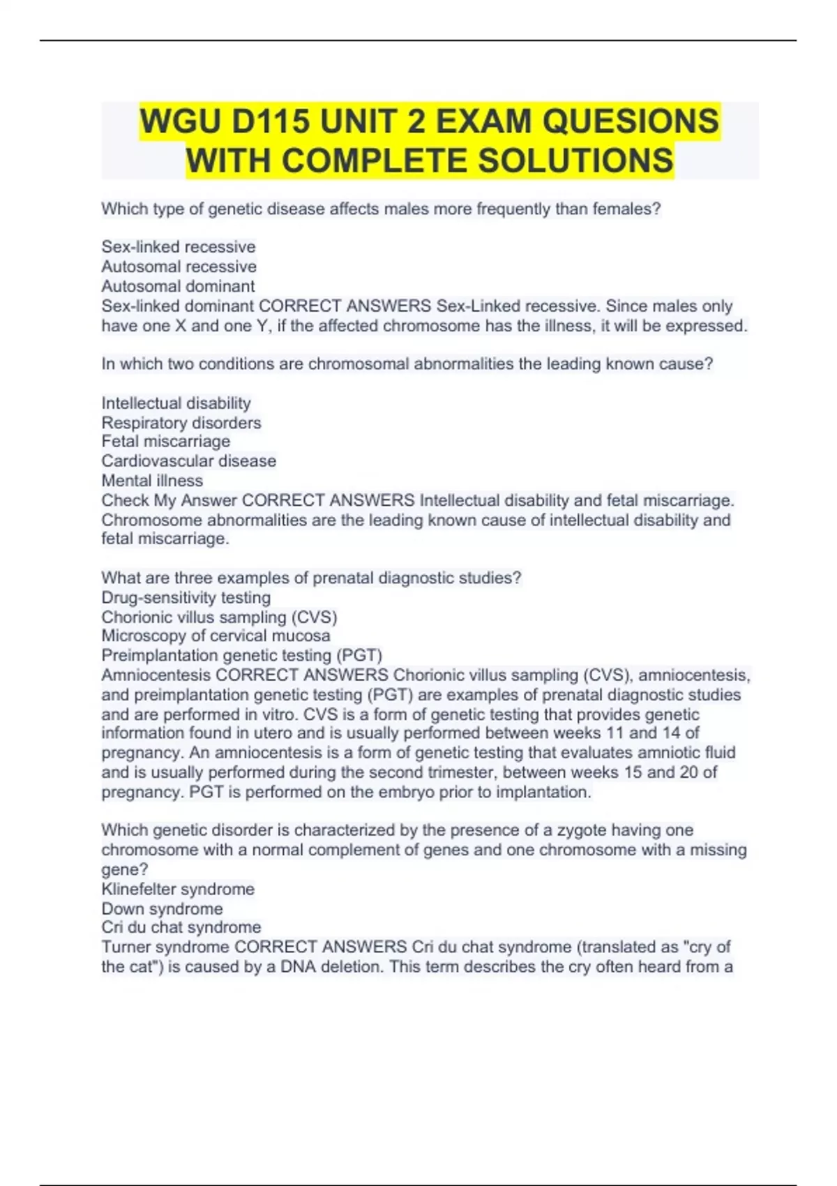 wgu d115 unit 2 exam quesions with complete soluti