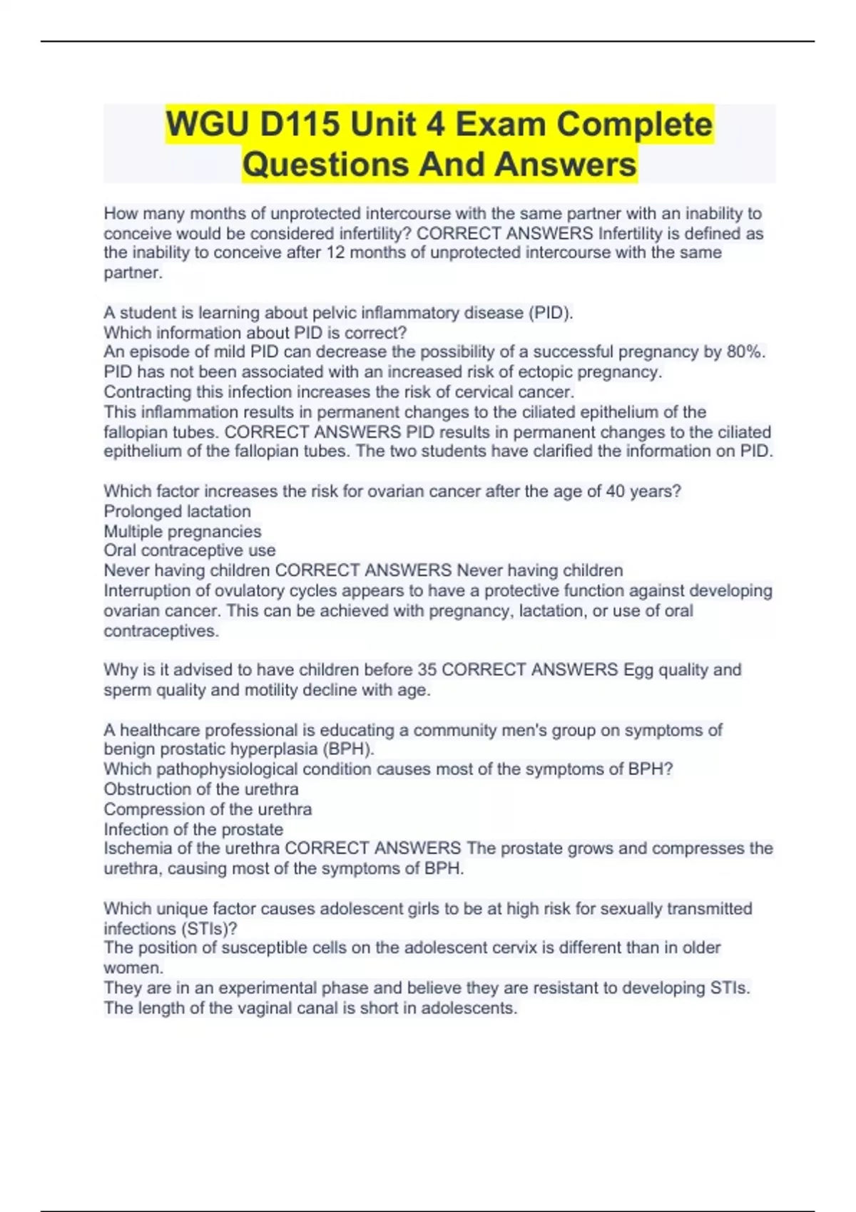 WGU D115 Unit 4 Exam Complete Questions And Answers