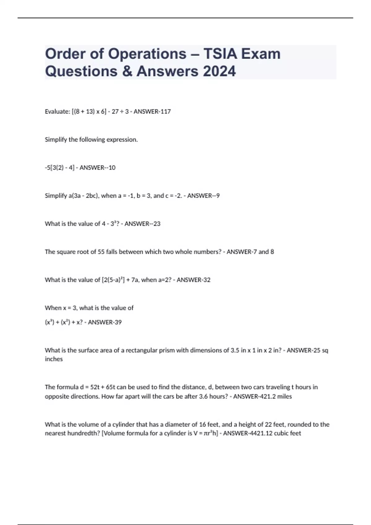Order of Operations – TSIA Exam Questions & Answers 2024