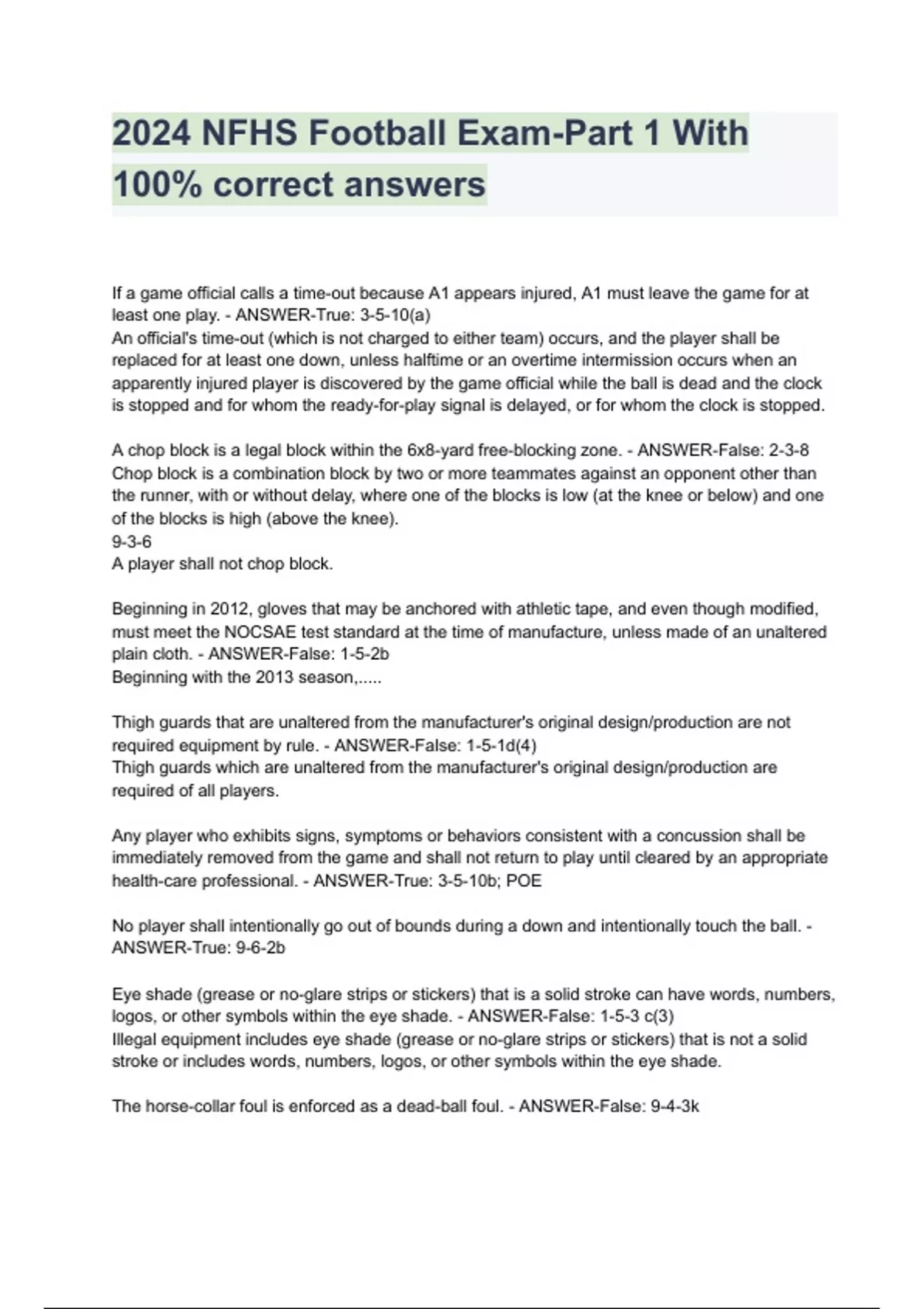 2024 NFHS Football Exam-Part 1 With 100% correct answers
