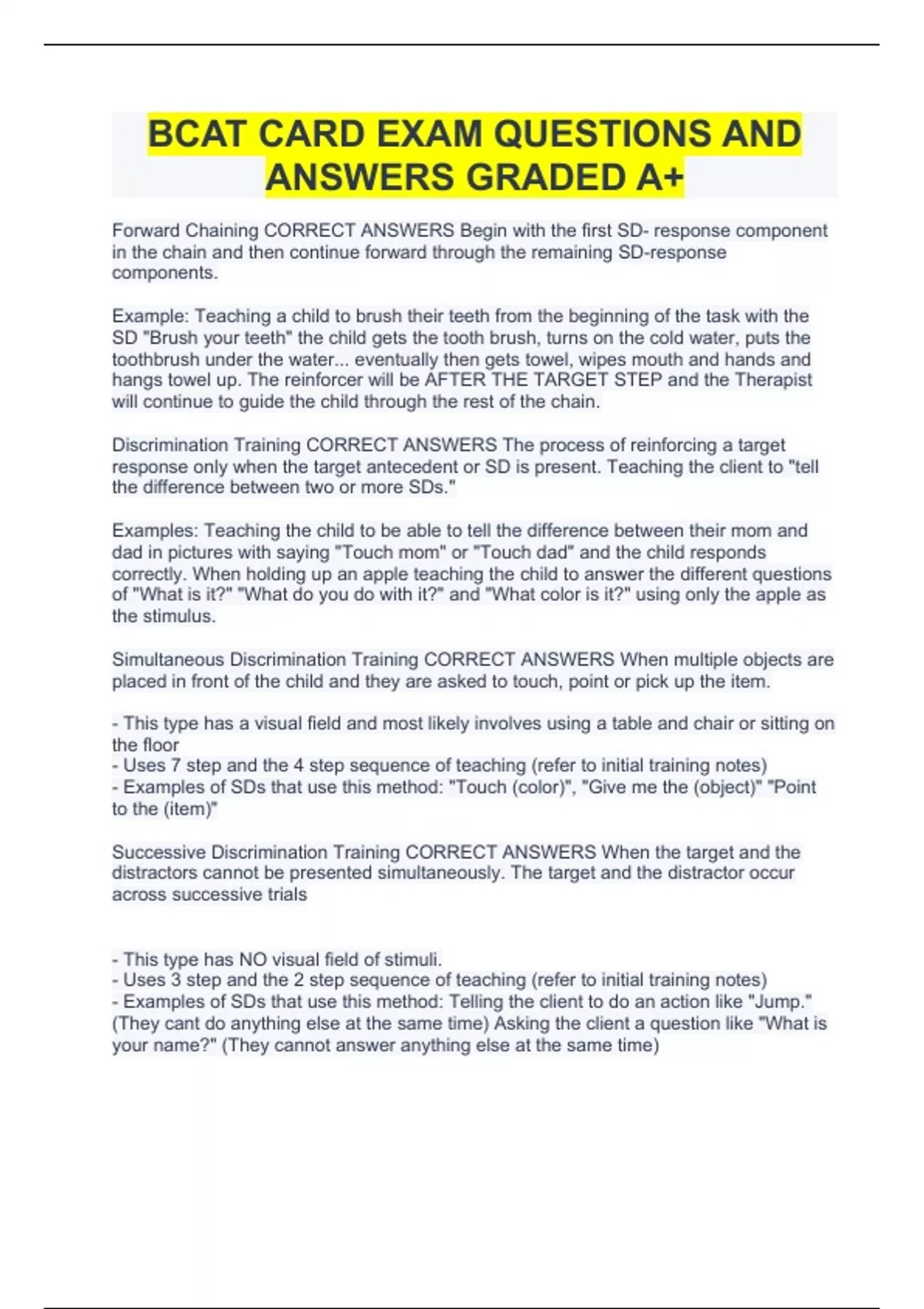 BCAT CARD EXAM QUESTIONS AND ANSWERS GRADED A+
